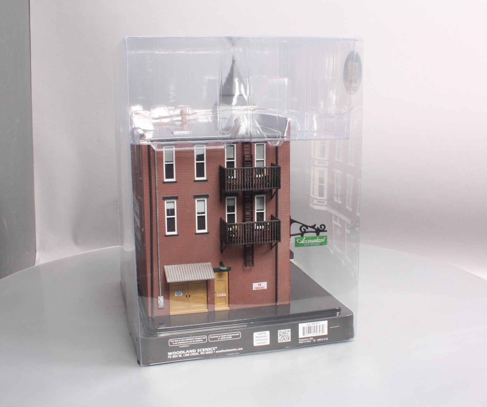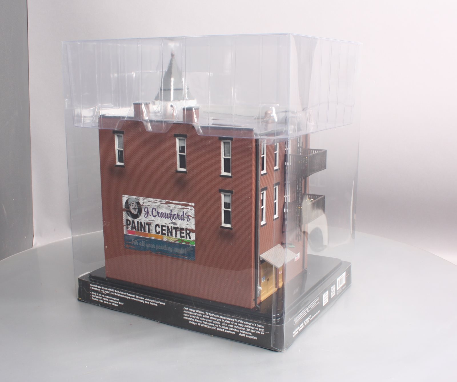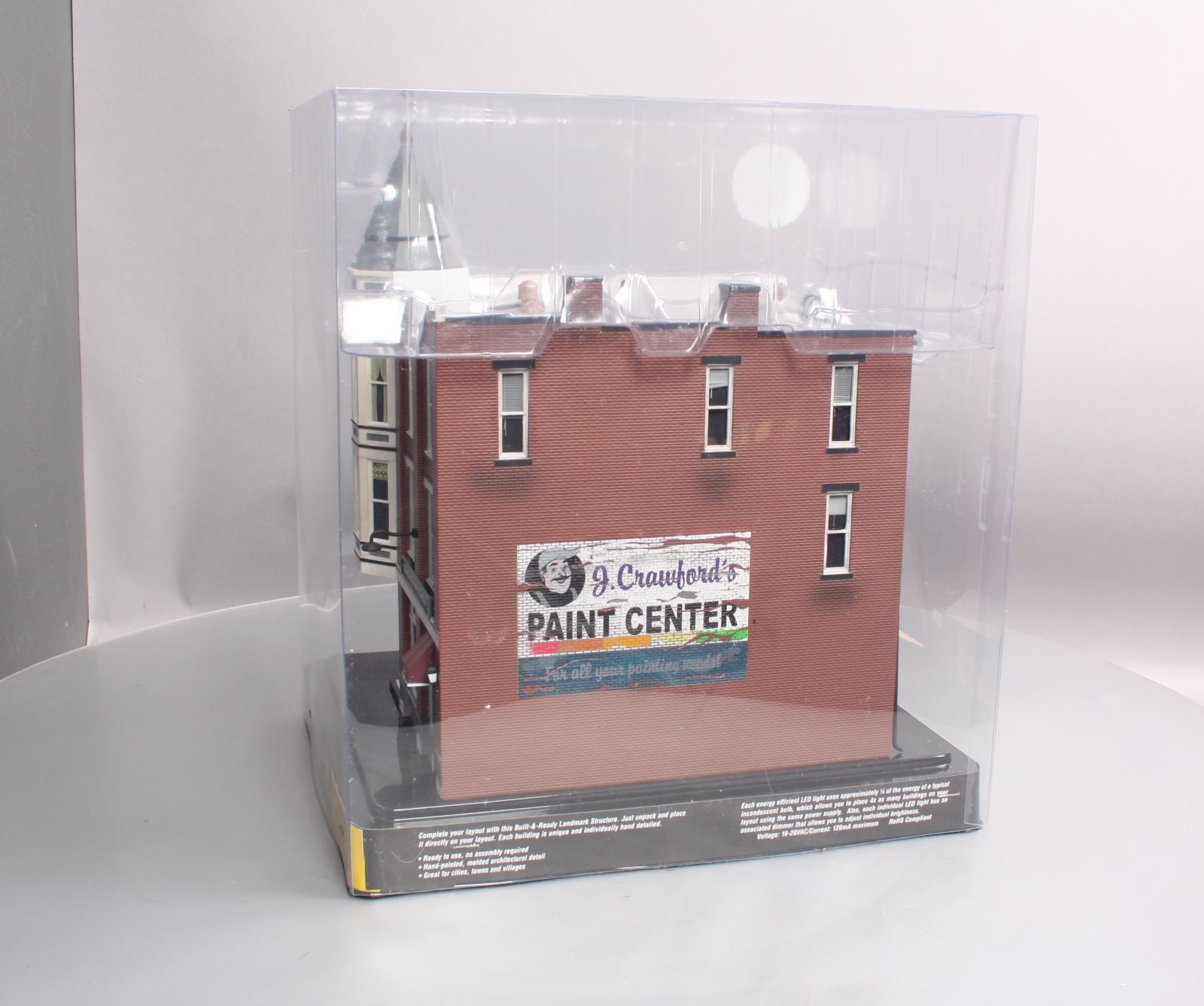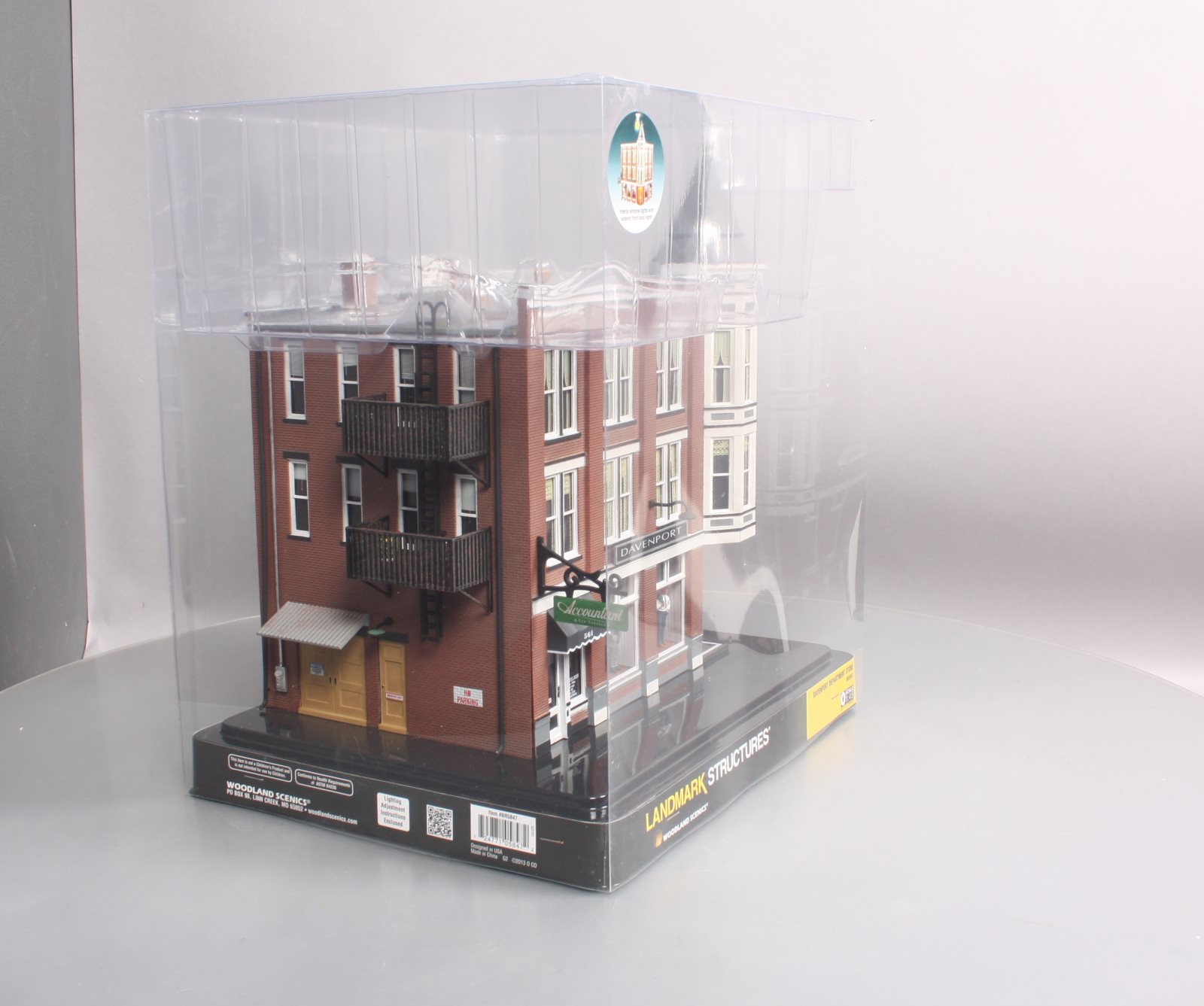 Here is a Woodland Scenics BR5847 O Scale Built-&-Ready Davenport Department Store Building. The classic Victorian architecture and two-story corner turret of this three-story corner department store will dress up any downtown area. It features large, first-floor picture windows with mannequins, and the second and third floor windows feature a variety of window treatments. Other details include roof-top accessories, wrought-iron balconies and fire escape, signage, awnings and light fixtures. Building includes printed interior and four LED lights, two white interior and two amber-colored exterior.