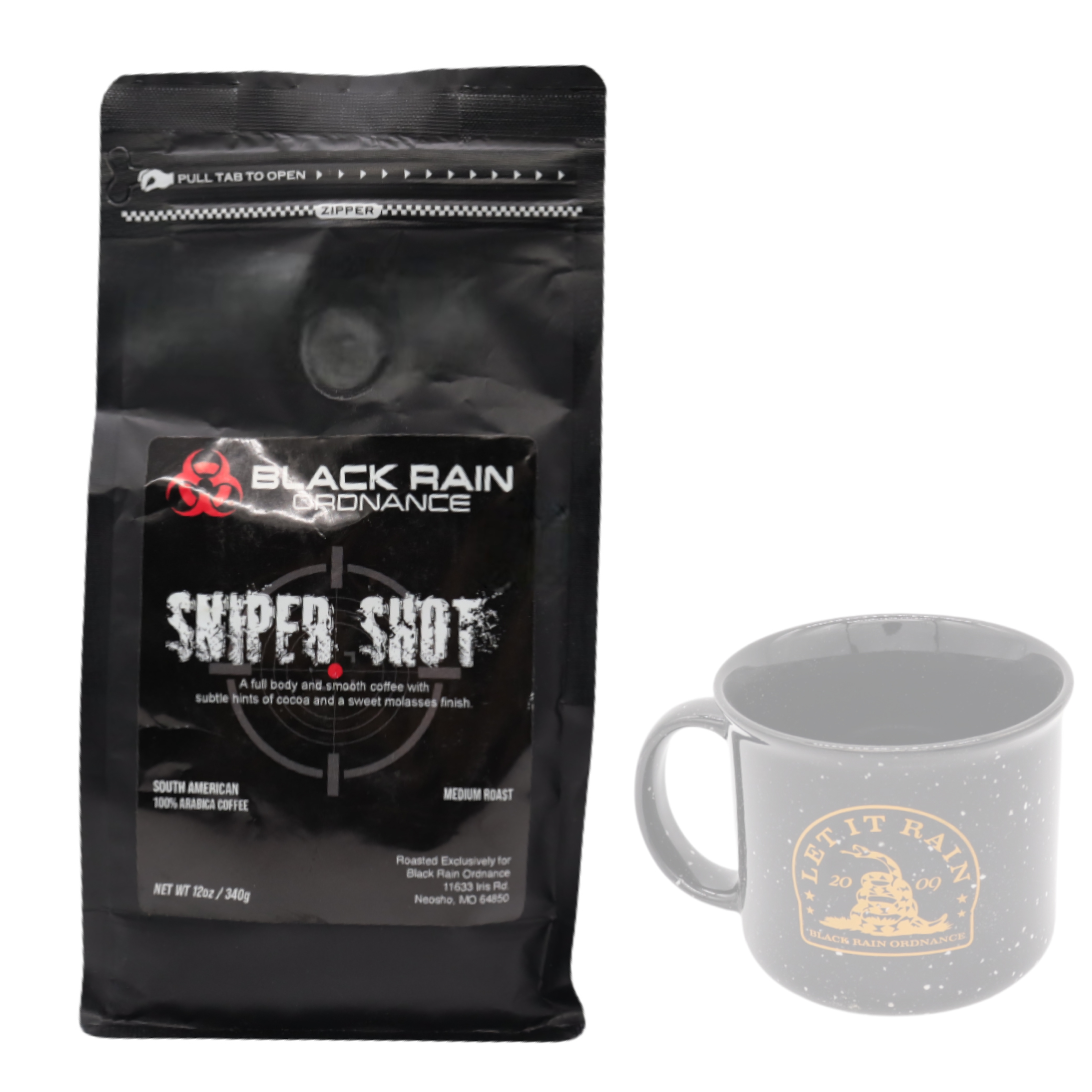 Tactical Fuel for the Discerning Operator Engineered for precision, endurance, and uncompromising flavor, Black Rain Ordnance Sniper Shot Coffee delivers a smooth, full-bodied medium roast with the perfect balance of strength and sophistication. Crafted from 100% premium Arabica beans, this coffee is roasted to exacting standards, ensuring a rich yet approachable brew with subtle cocoa notes and a sweet molasses finish. Whether you're gearing up for the range, the field, or just another day of domination, Sniper Shot Coffee provides the focus and energy you demand. Why Choose Sniper Shot Coffee? ✔ 100% Arabica Beans – Sourced from high-altitude farms for superior quality and flavor. ✔ Precision Roasted – Expertly crafted to highlight the bean’s natural sweetness and complexity. ✔ Versatile Brewing – Perfect for drip machines, French press, pour-over, AeroPress, and cold brew. ✔ No Compromises – Just like Black Rain Ordnance firearms, this coffee is built for performance. Who It’s For Shooters & Operators – Fuel up before a long day at the range or in the field. Outdoor Enthusiasts – The perfect campfire or pre-hunt brew. Tactical Professionals – Stay sharp and mission-ready. Coffee Connoisseurs – A high-quality roast with depth and character. Compatible with most coffee makers Black Rain Ordnance – Engineered for Excellence Just like their legendary firearms, Black Rain Ordnance doesn’t cut corners. This coffee is roasted fresh, packed for maximum freshness, and designed for those who refuse to settle for mediocrity. Lock, load, and brew up—your perfect shot of coffee awaits.Roast Blend - This coffee offers a medium to dark roast blend, providing a rich and robust flavor profile that caters to a wide range of coffee enthusiasts. The balance between medium and dark roast ensures a satisfying and well-rounded taste.