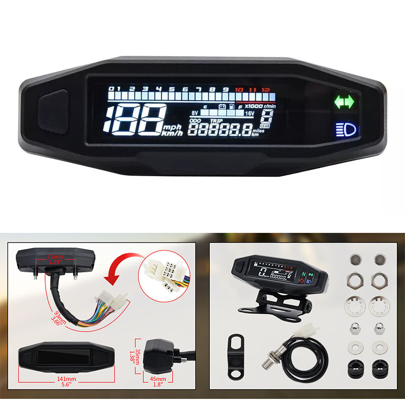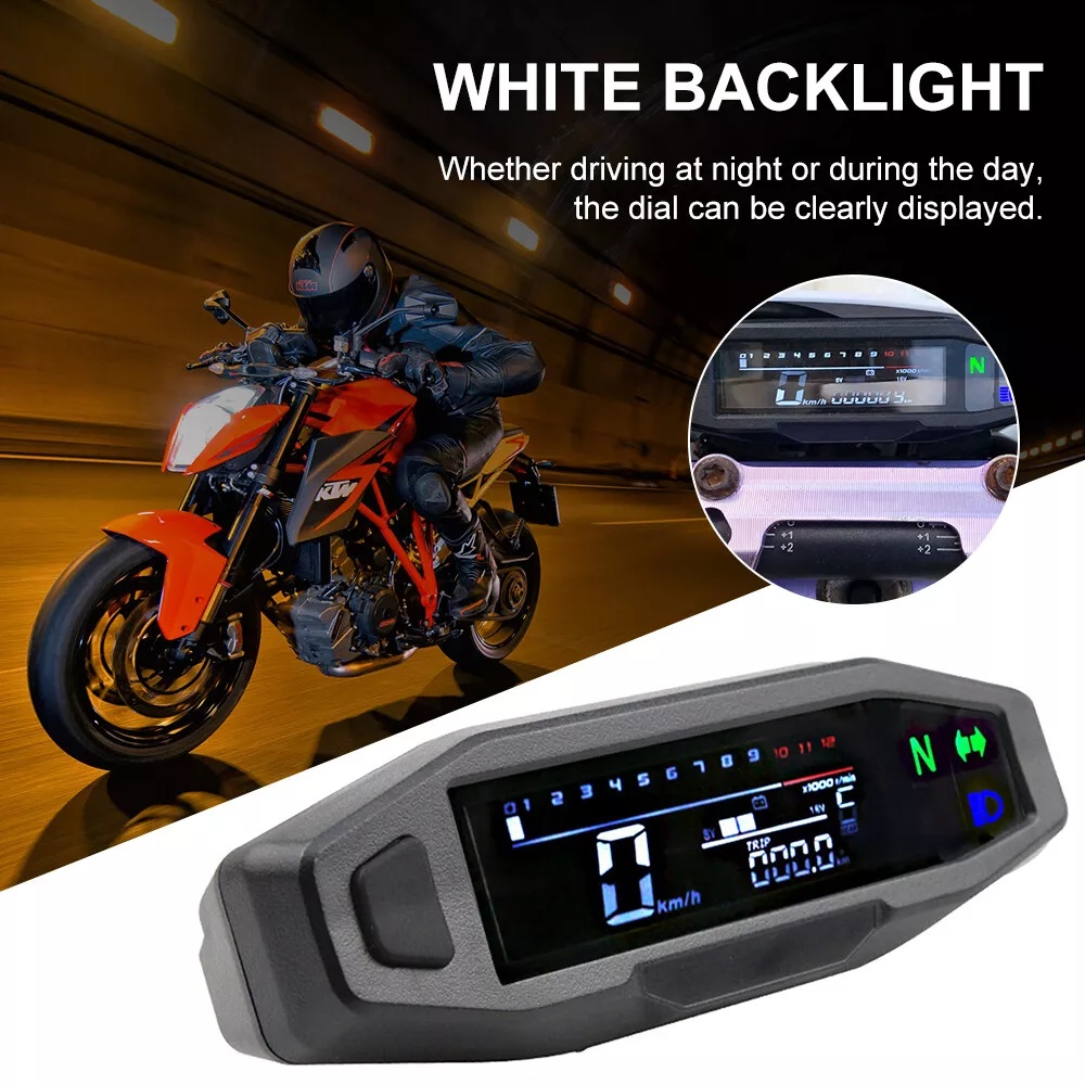 Motorcycle Digital Speedometer Odometer Backlight Tachometer Gauge With Brackets