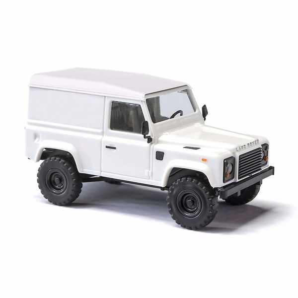 Bei dem Busch-Modell handelt es sich um den Defender 90 County Station Wagon (CSW), der fortan als kleines Kraftpaket in unwegsamen H0-Modelllandschaften über Stock und Stein fährt. Scharfe Konturen und detailreiche Features machen aus dem groben kantigen Klotz ein richtiges Schmuckstück. Auch die charakteristische Sitzanordnung der Innenausstattung ist vorbildgerecht wiedergegeben, ebenso wie das andersfarbige Dach. Die Frontansicht des Modells wird beherrscht durch die große schwarze Kühlermaske, in der helle transparente Scheinwerfer in Klarglasoptik sowie feinste transparente Blinker eingesetzt sind. Die grobstolligen Reifen und typgerechten Felgen perfektionieren das markante Erscheinungsbild. Mit diesem Modell erhält die Busch-Geländewagen-Collection ein weiteres Highlight an geländegängigen Fahrzeugen mit Kultstatus.