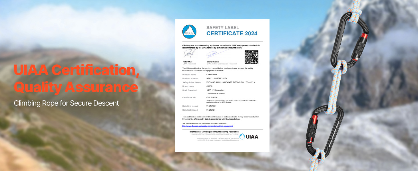 UIAA Certified: This carabiner has been internationally certified by UIAA. We strictly adhere to international standards to ensure the quality, safety, and reliability of every carabiner clip