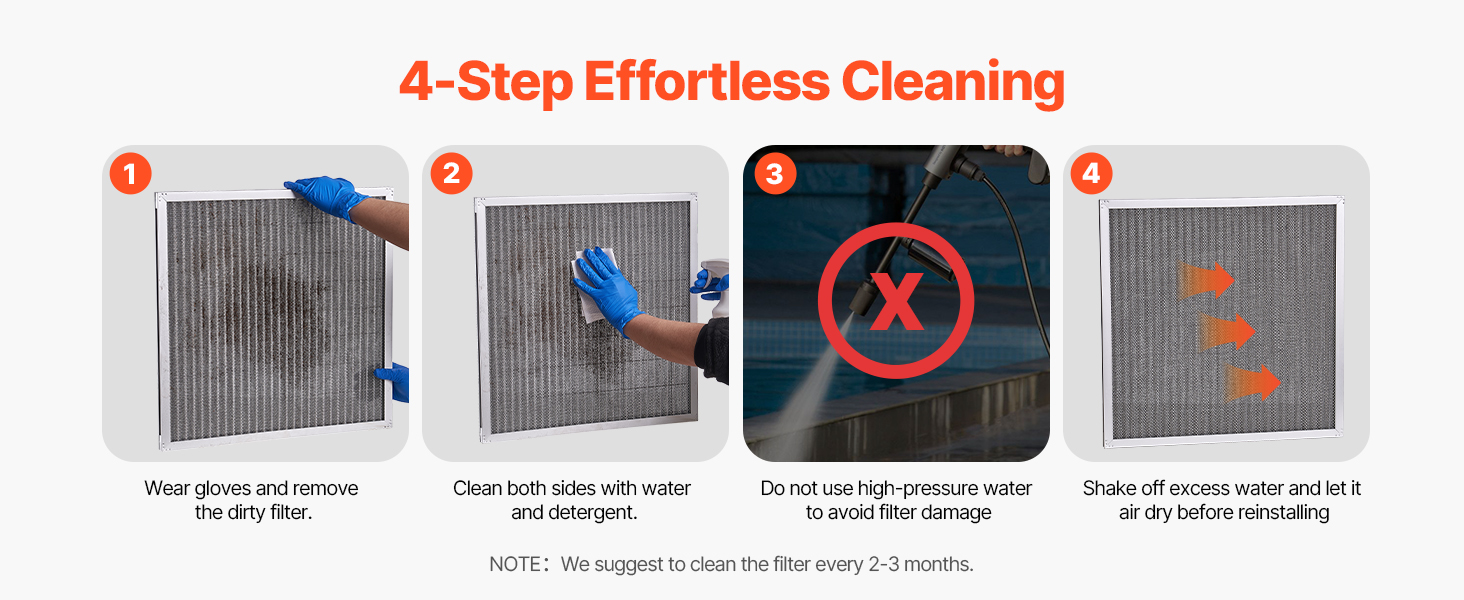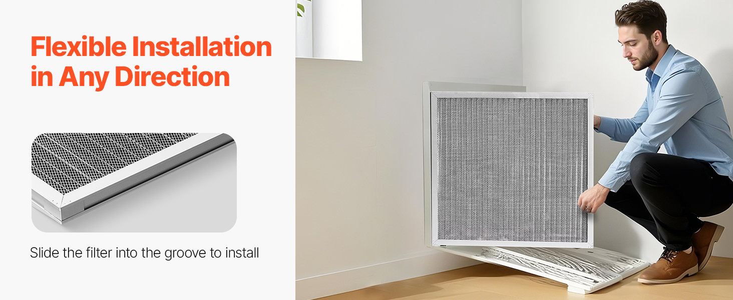The aluminum electrostatic air filter is simple to install and maintain. It easily slides into your device’s slot, and cleaning is hassle-free. For deep cleaning, wash with water and a mild detergent, and perform maintenance every 2-3 months to maintain optimal performance.