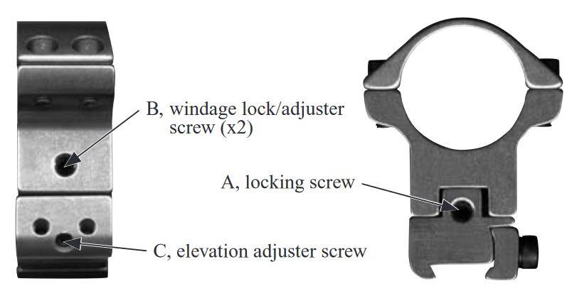 Elevation can be adjusted via a small screw in the foot of the (rear) mount, using a special ball-headed Allen key - so shaped as to allow for easier access into awkward areas. This elevation adjustment in the mount is apparently a unique feature; along with the fact that the scope sight line height can effectively be set as previously stated, when both mounts are simultaneously raised.