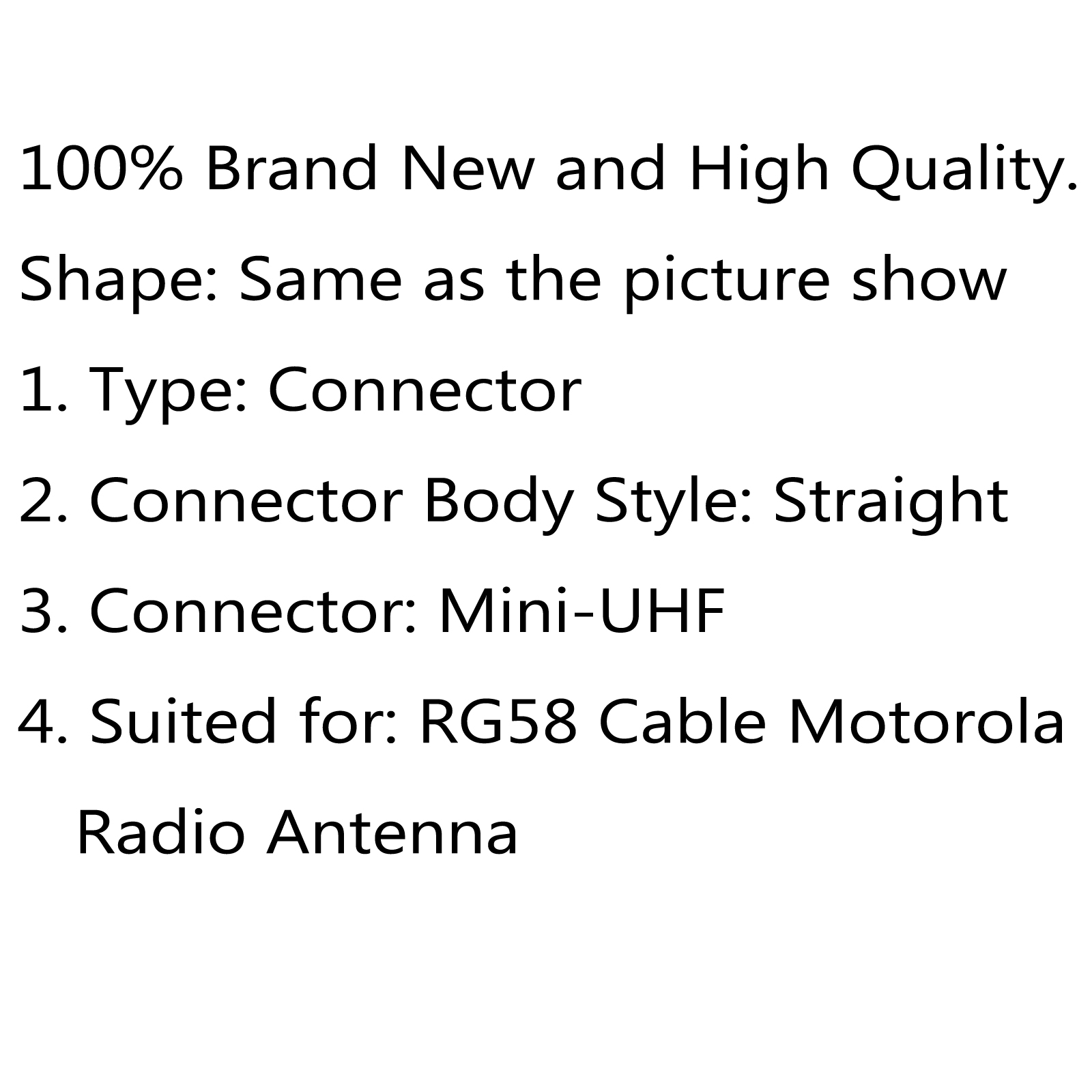 4. Suited for: RG58 Cable Motorola Radio Antenna