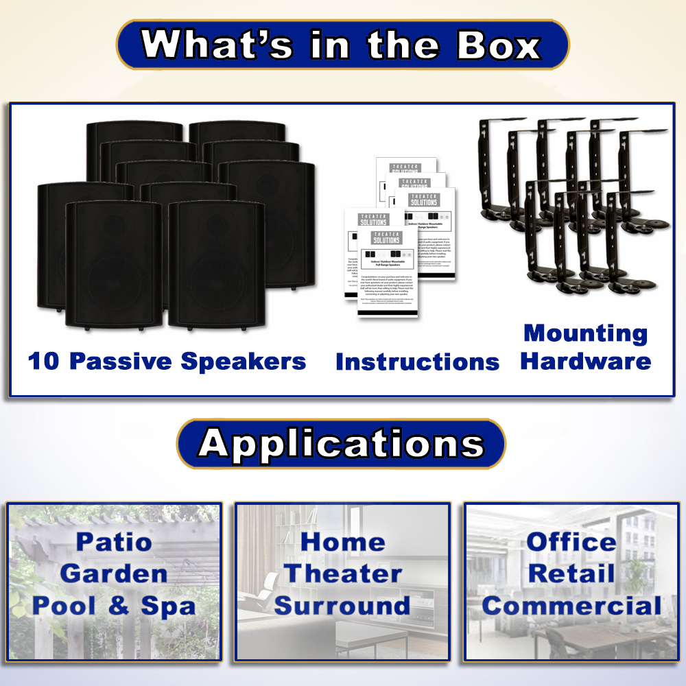 Theater Solutions by Goldwood TS425ODB Outdoor Mountable Wired 10 Speaker Set
