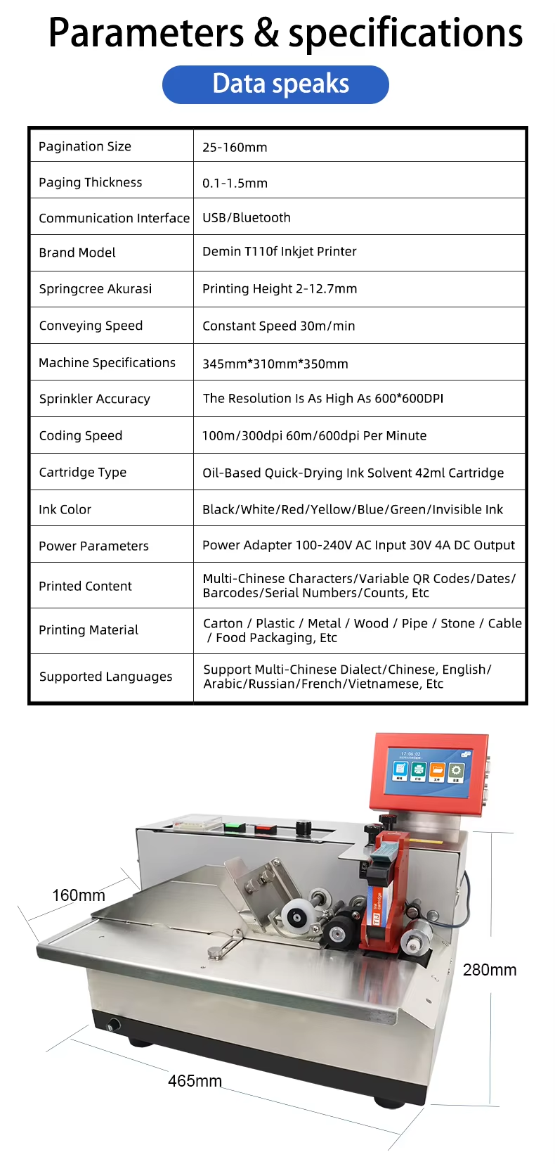 Our main business is: TIJ inkjet printers, CIJ inkjet printers, UV inkjet printers, laser inkjet printers, conveying equipment, accessories and consumables and other products, products are widely used in printing, electronics, plastics, hardware, food and beverage, medicine, cosmetics, tobacco, wood, auto parts, cables and building materials and other fields. At present, we have cooperated with more than 100 countries and regions, including Italy, Spain, the United States, Canada, Mexico, Russia, Vietnam, Thailand and so on. We always adhere to the customer first, continuous innovation and upgrading, and strive to provide all customers with the best products and services, committed to becoming the most reliable supplier!
