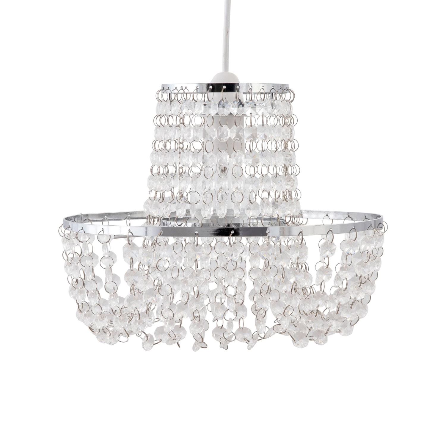 Set of 2 Modern acrylic crystal chandelier style easy fit light shades - chrome & clear finish.