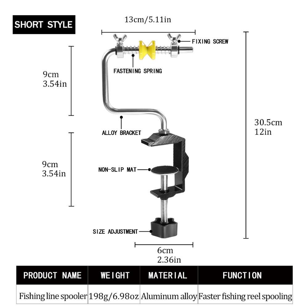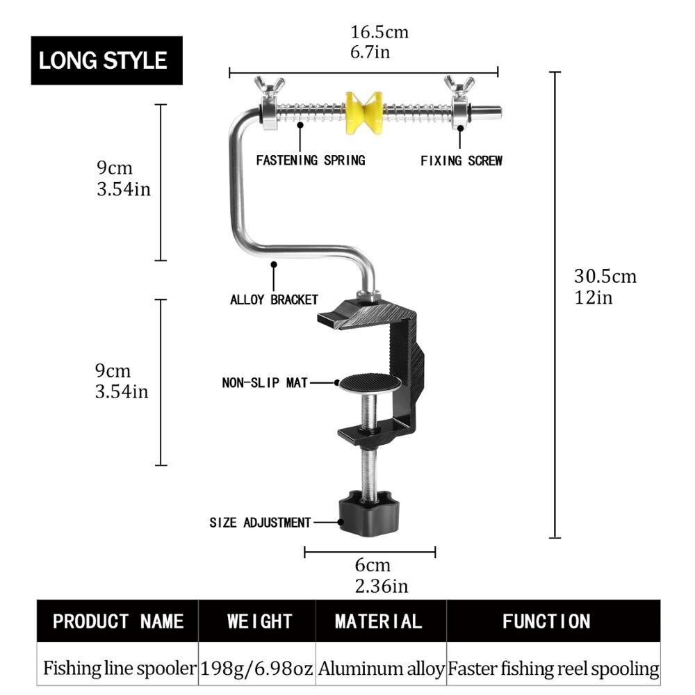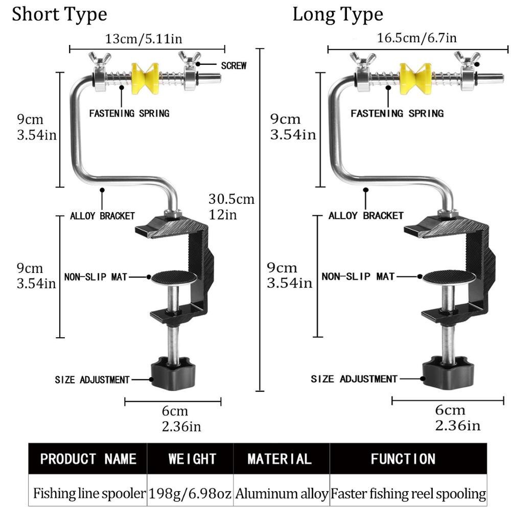 Specification: Item: Fishing Line Spooler Length: 30.5cm/12in Width: 13cm/5.11in(Short Type); 16.5cm/6.7in(Long Type) Maximum Spool Width: 5cm/1.97in(Short Type); 8cm/3.15in(Long Type) Maximum Thickness: 6.2cm/2.44in