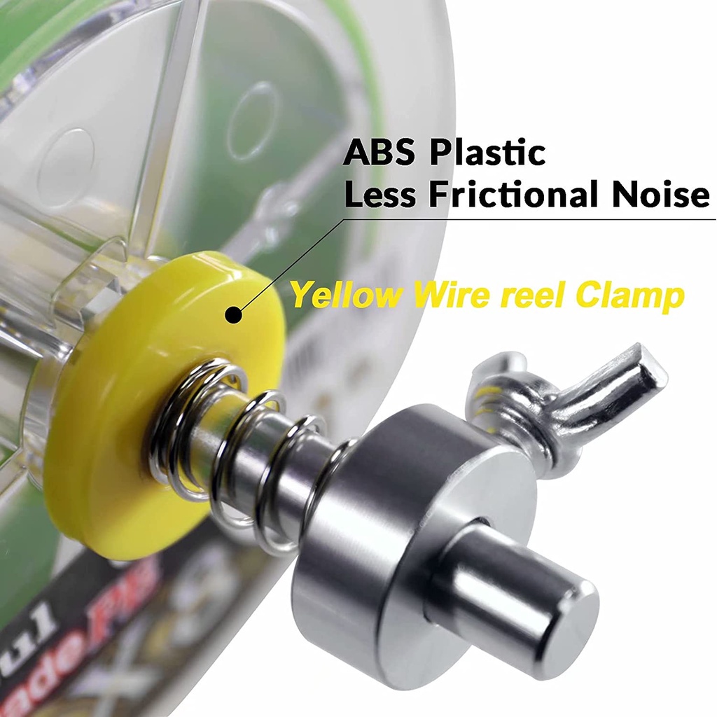 5.EASY TO USE: Line Spooler are easy to use. TWO LINE WINDER: A-Long Style(Maximum spool width:3.15in/80mm), A-Short Style(Maximum spool width:1.96in/50mm), B-Long Style(Maximum spool width:3.15in/80mm), B-Short Style(Maximum spool width:1.96in/50mm). B Style is with yellow wire reel clamp which is made of ABS Plastic, When rotate the fishing wire reel, it has less frictional noise.