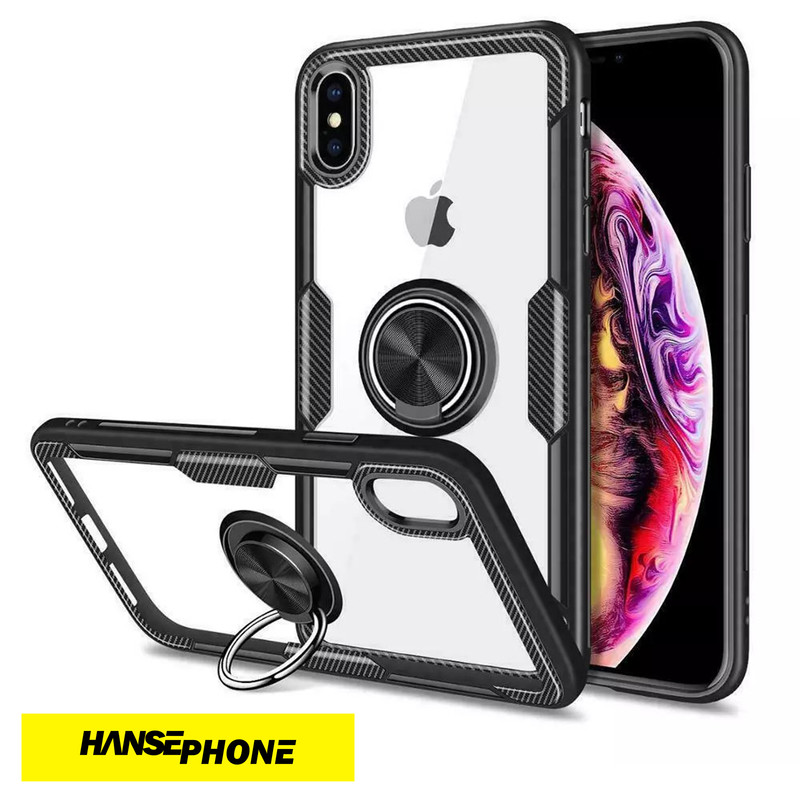 Transparente Schutzhülle mit Carbon Optik und Ring.