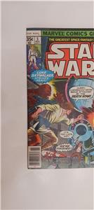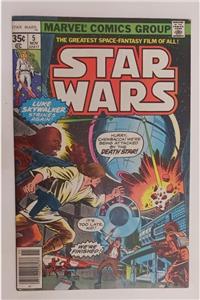 STAR WARS #5 MARVEL COMIC FROM NOVEMBER 1977 FIRST PRINTING WITH STORY "LO, THE MOONS OF YAVIN" WITH ART BY HOWARD CHAYKIN AND STEVE LEIALOHA. COMIC IS IN FINE 6.0 CONDITION. POSTAGE $7.25 IN THE UNITED STATES AND BY ARRANGEMENT OVERSEAS.