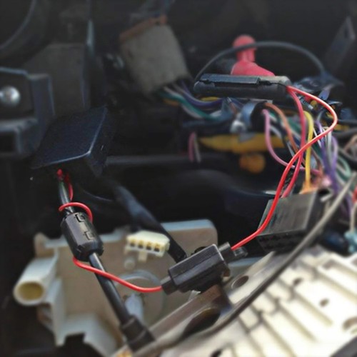 Bei eingeschaltetem Radio schließen Sie das rote Kabel an das 12-Volt-Antennenkabel an.