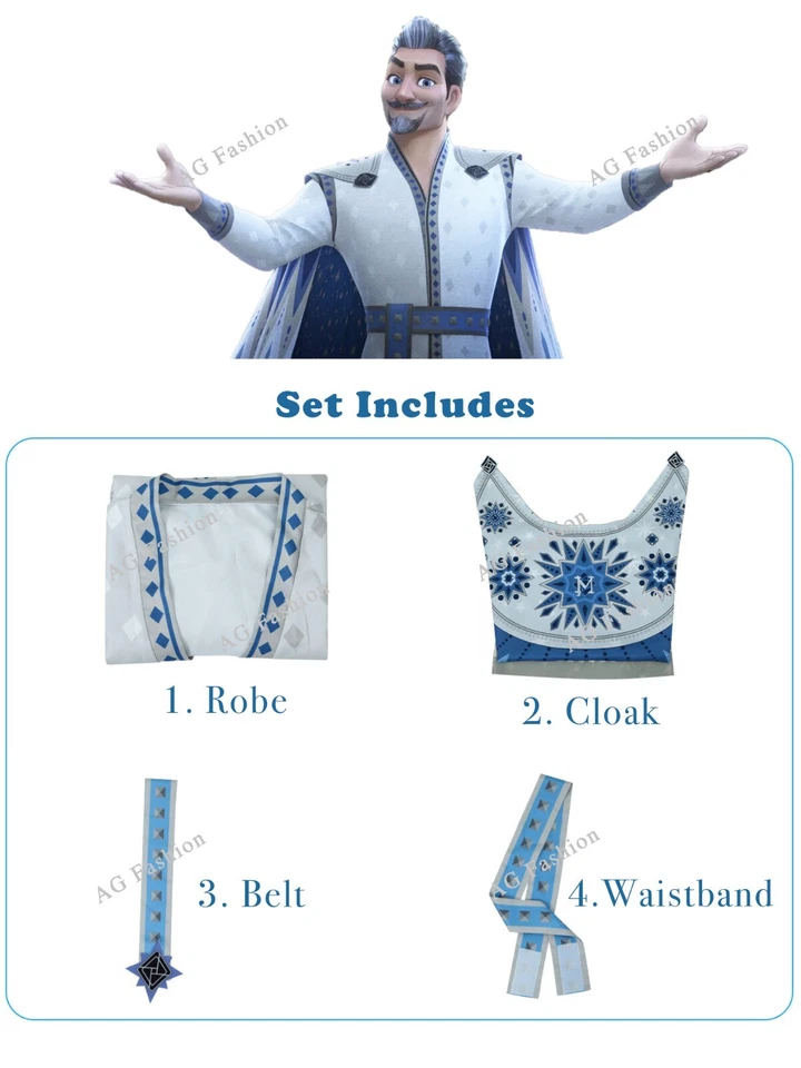 Accented with sky-blue trim and geometric detailing, the robe is finished with a matching belt and a signature emblem for added authenticity. Whether you're portraying a wise sorcerer, a star mage, or attending a themed event, this robe offers both visual impact and comfort.