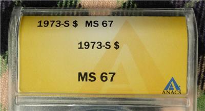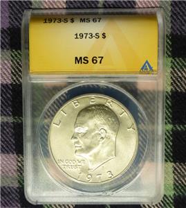 Up for sale is a 1973-S United States of America Eisenhower 40% silver dollar that is ANACS certified gem MS67.