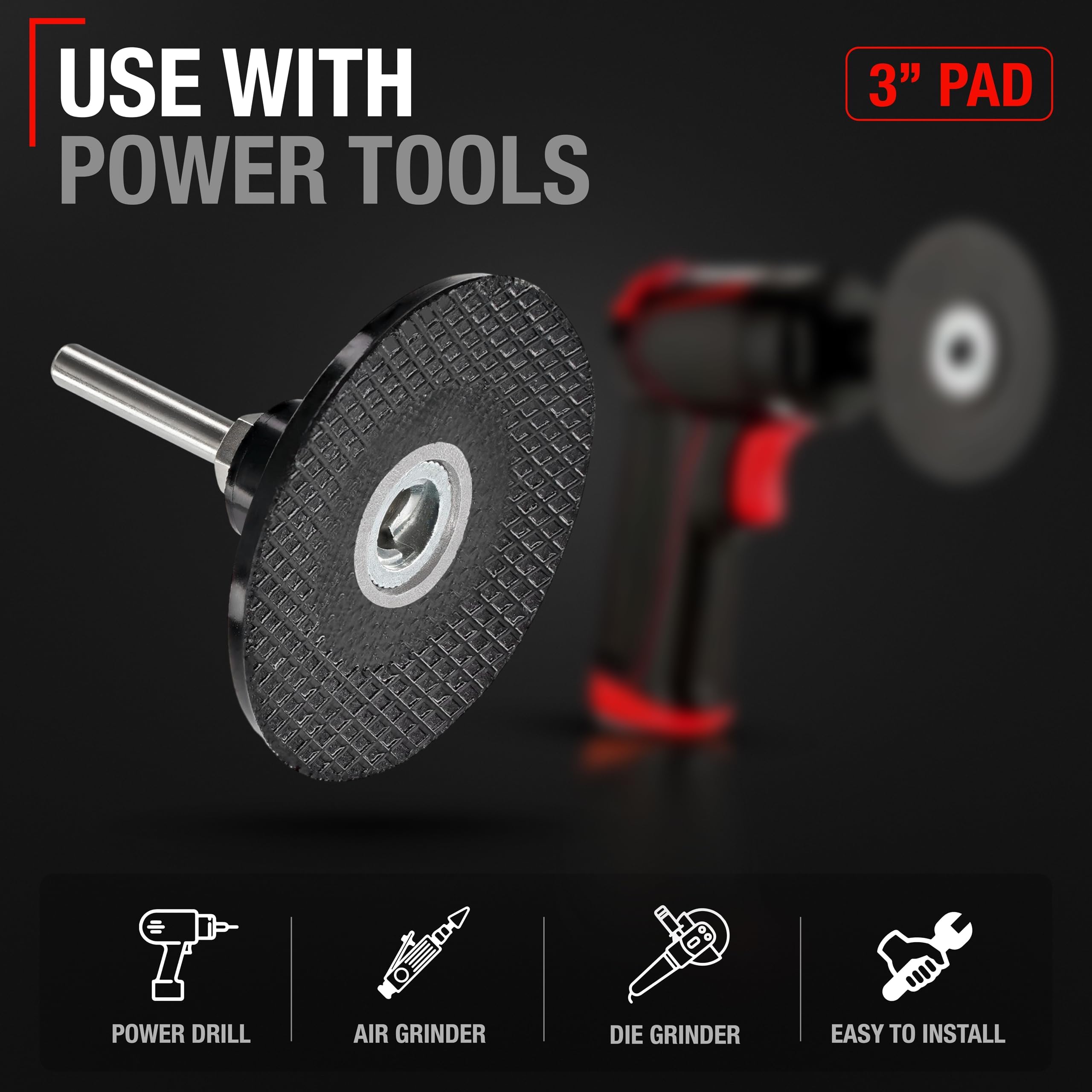 Enhance your sanding and polishing projects with this 2 Pack of 3-inch Conditioning Disc Pad Holder Assembly. Compatible with 3M Scotch-Brite brand discs, this high-quality, OEM-style pad holder assembly is designed to deliver exceptional performance and durability for a variety of applications. Featuring a 1/4"" shank and Speed-Lok TR quick-change attachment, it provides easy compatibility with a wide range of power tools, including power drills, die grinders, and air grinders. This pad holder is built for heavy-duty use, featuring a robust rubber pad and an aluminum core with a nickel-plated removable steel shank, ensuring long-lasting strength and superior performance. Whether you're sanding, polishing, or surface conditioning, this versatile holder assembly meets all your needs for both professional and DIY projects. Compatible with: Power drills Die grinders Air grinders Speed-Lok TR quick-change attachment systems 3M Scotch-Brite brand discs Constructed with high-quality materials, including a heavy-duty rubber pad, aluminum core, and nickel-plated steel shank, this disc pad holder is built to withstand wear and tear, ensuring durability and reliable performance over time. Its user-friendly design allows for quick and easy installation, making it the ideal solution for anyone looking to improve their sanding and polishing capabilities.