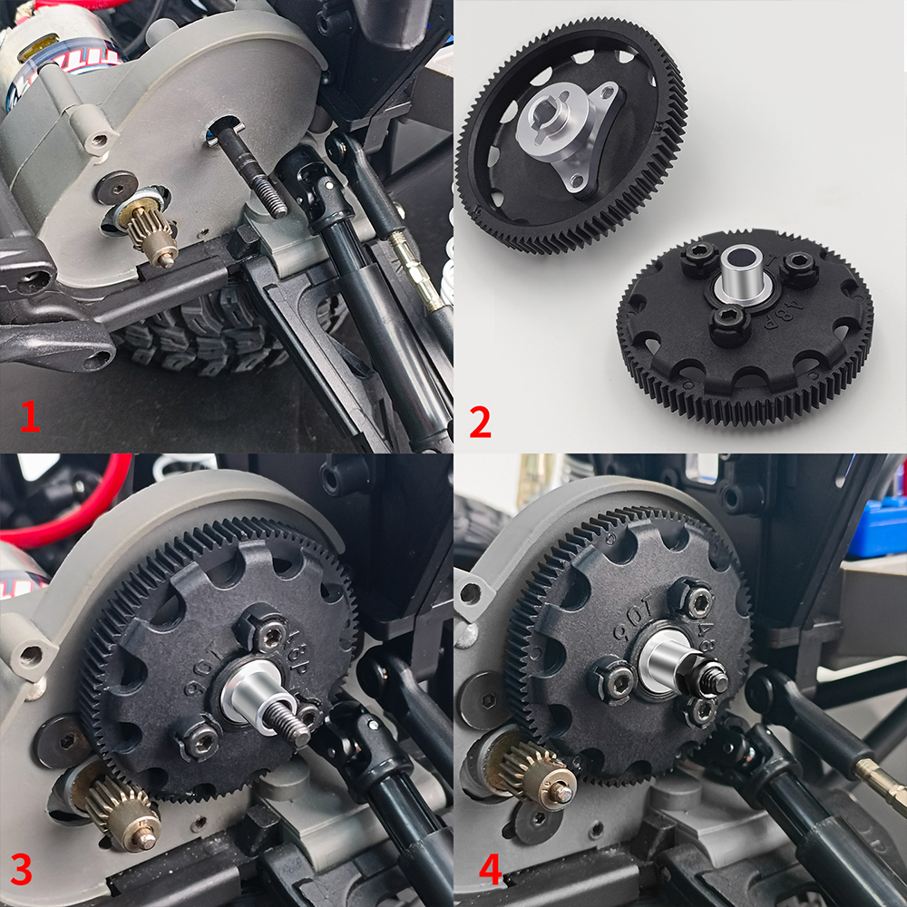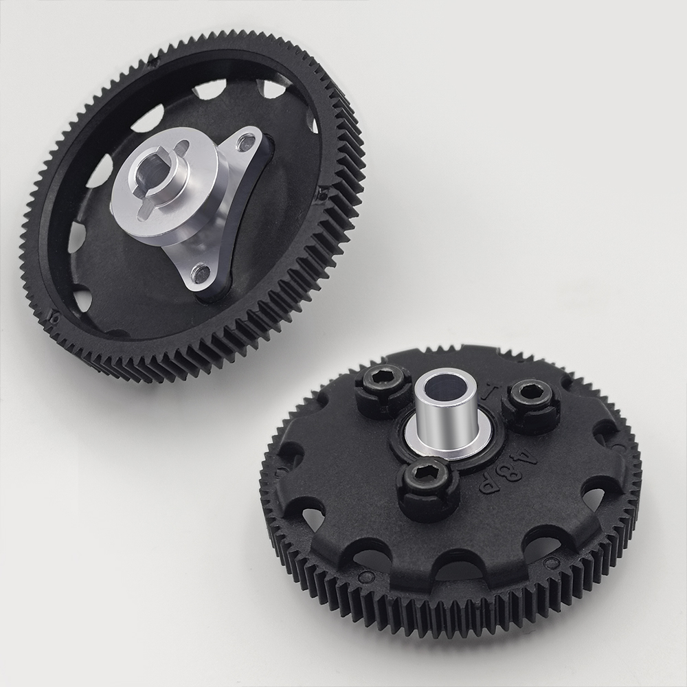 Heavy duty yet light weight slipper eliminator spur gear mounting hub for all 1/10 Traxxas 2wd Slash and Bandit buggies and trucks.