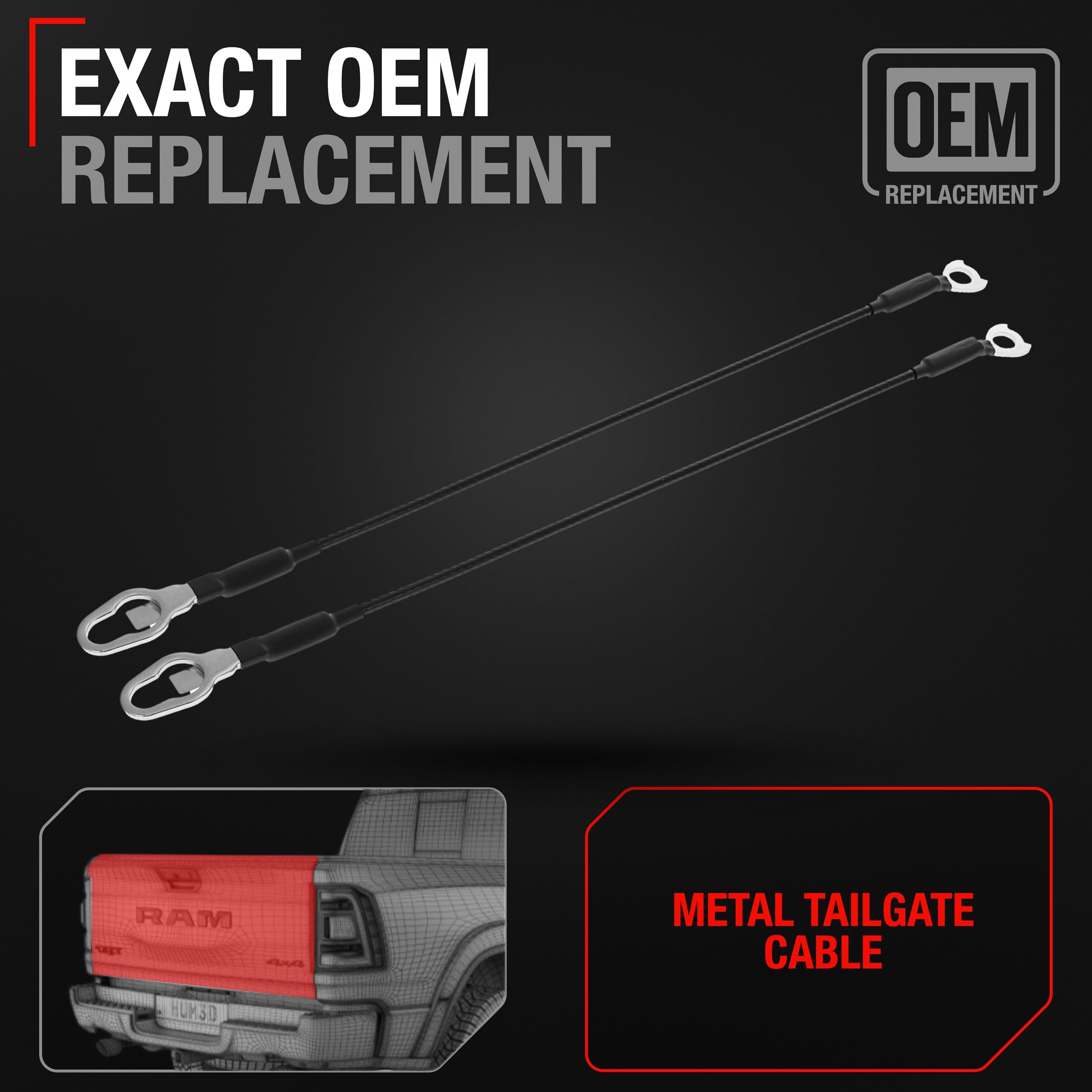 Enhance the functionality and safety of your vehicle's tailgate with our Tailgate Support Cable, compatible with 2003-2024 Dodge Ram 1500, 2003-2024 Dodge Ram 2500, 2003-2024 Dodge Ram 3500 This high-quality replacement part is designed to meet or exceed OEM specifications with part number 55276074AC, 55276074AE, 68054864-AA, 38542, ensuring a perfect fit and easy installation. This robust tailgate cable is crucial for the proper support and safe operation of your tailgate, providing reliable performance under a variety of conditions. It is specifically designed to replace worn or broken cables, restoring the integrity and security of your vehicle’s tailgate. Crafted from durable metal, this tailgate support cable ensures longevity and consistent performance, maintaining the smooth operation and stability of your tailgate. The installation process is straightforward, allowing for quick and efficient replacement without the need for professional help.