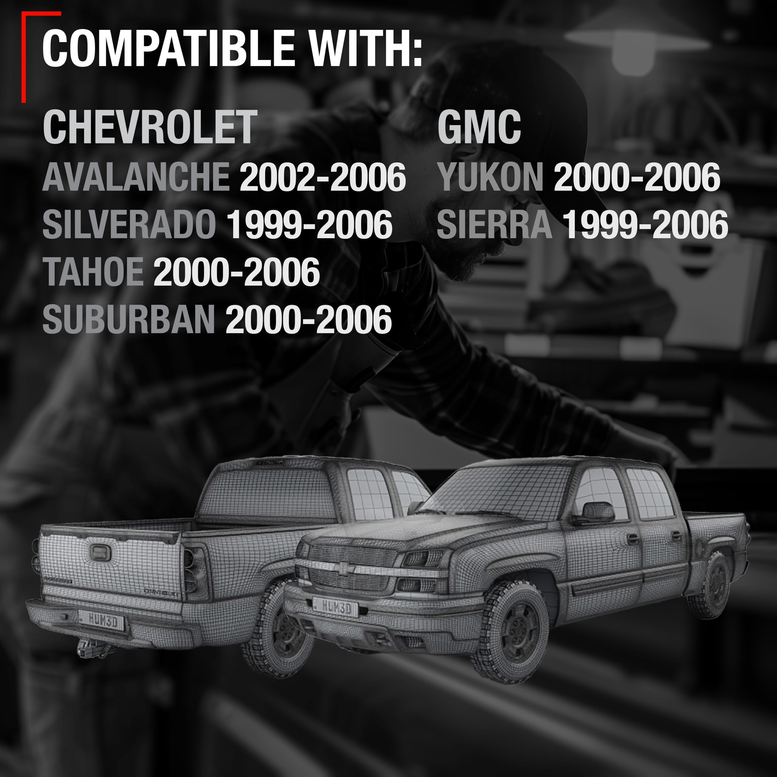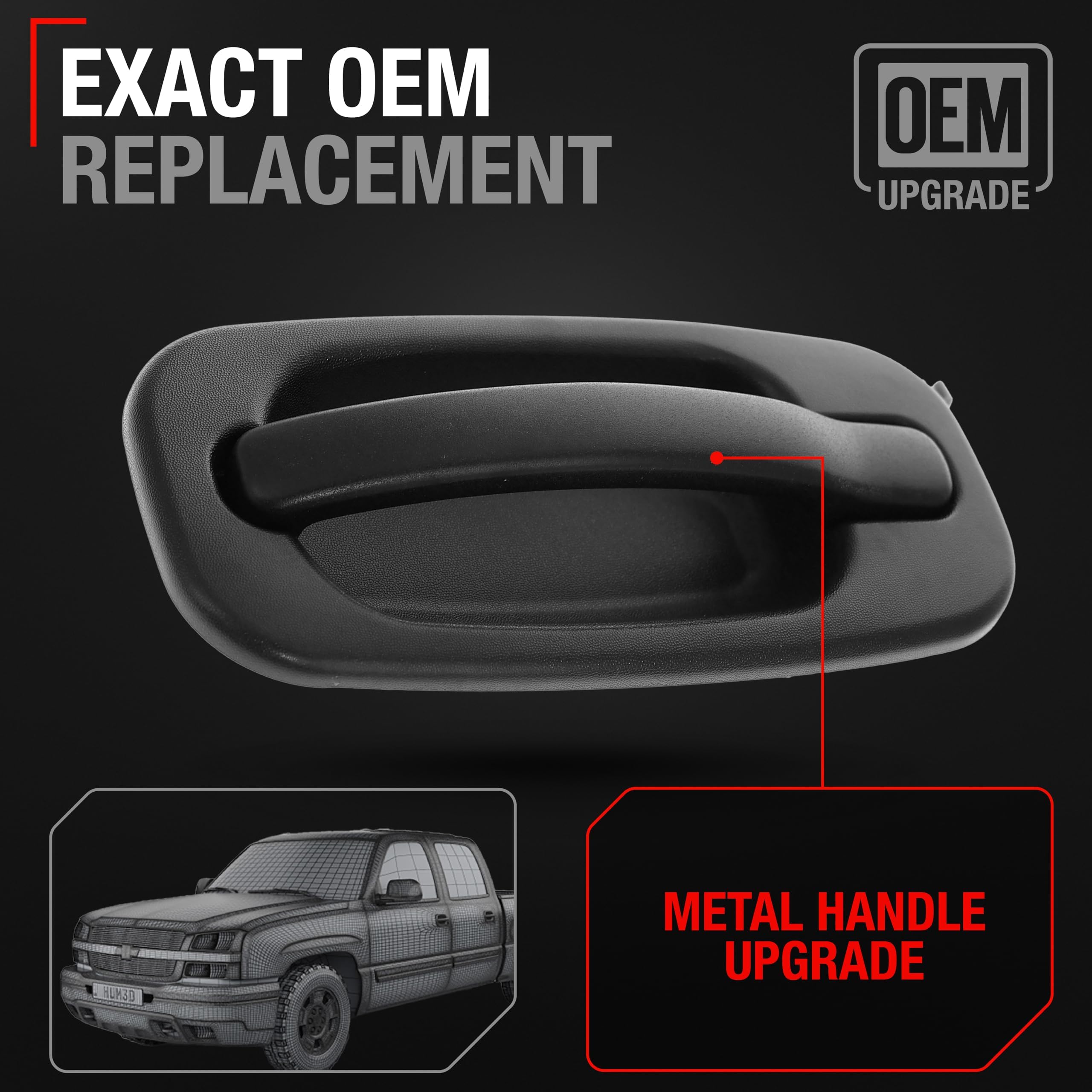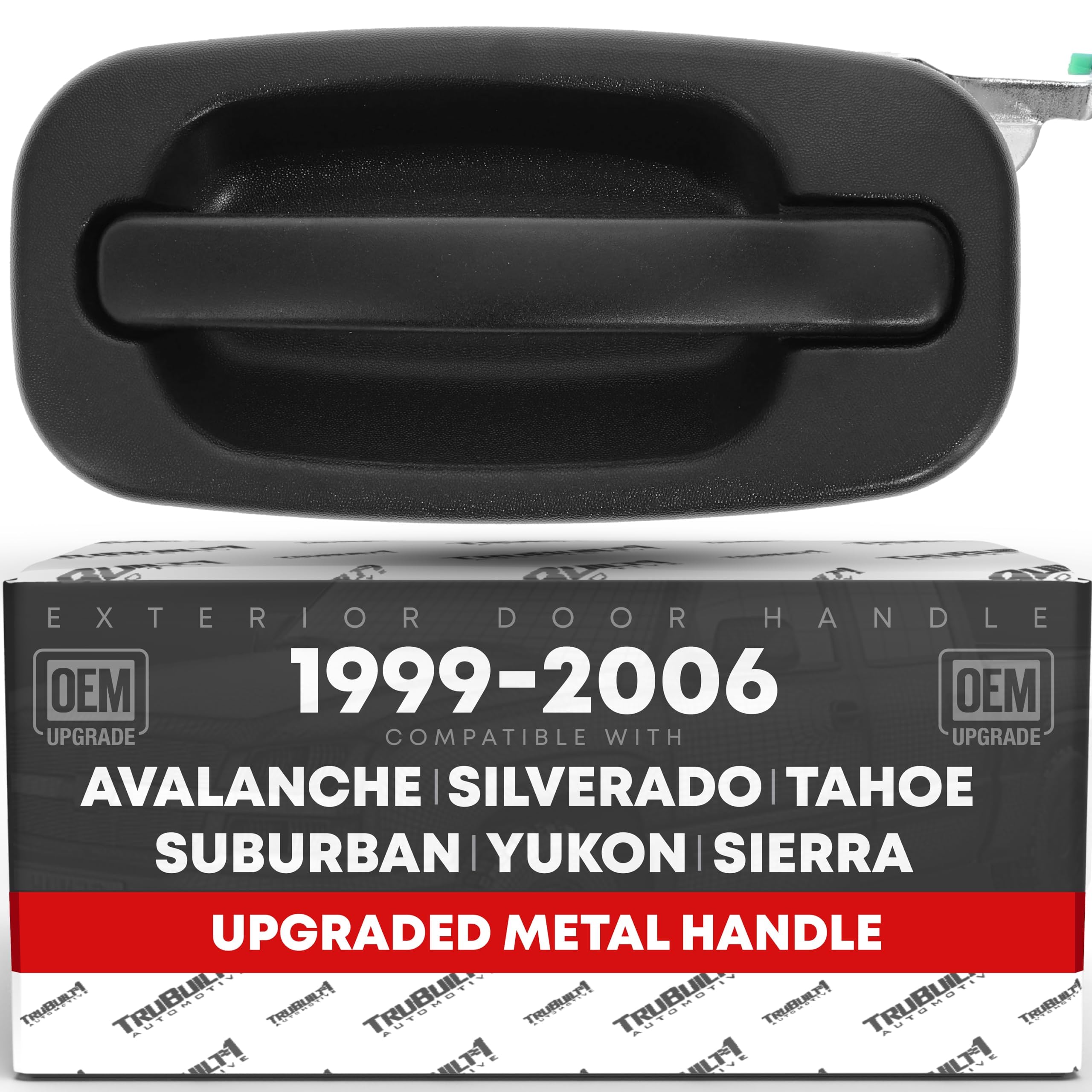 Upgrade your vehicle's exterior with this high-quality Exterior Door Handle. Compatible with 1999-2006 Chevrolet Silverado, 2000-2006 Chevrolet Tahoe, 2000-2006 Chevrolet Suburban, 2002-2006 Chevrolet Avalanche, 1999-2006 GMC Sierra, 2000-2006 GMC Yukon, this replacement handle directly matches OEM part number 15721571, 80579, GM1520105. Crafted from upgraded metal handle and plastic housing in an textured black, this handle complements your vehicle's exterior. Engineered specifically for the rear left (driver side) door, it's easy to install and offers enhanced access while maintaining operational efficiency. The installation process is simple and can be easily accomplished at home with just a few basic tools. Opt for our Exterior Door Handle to maintain the operational efficiency and enhance the luxury of your vehicle's exterior.