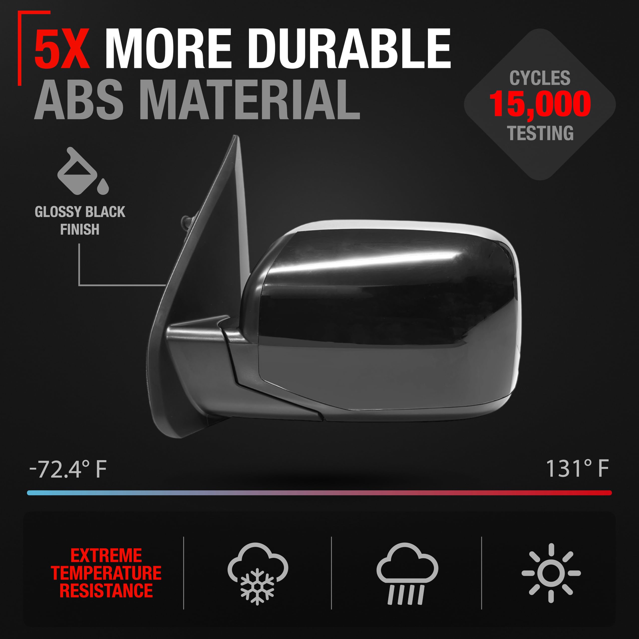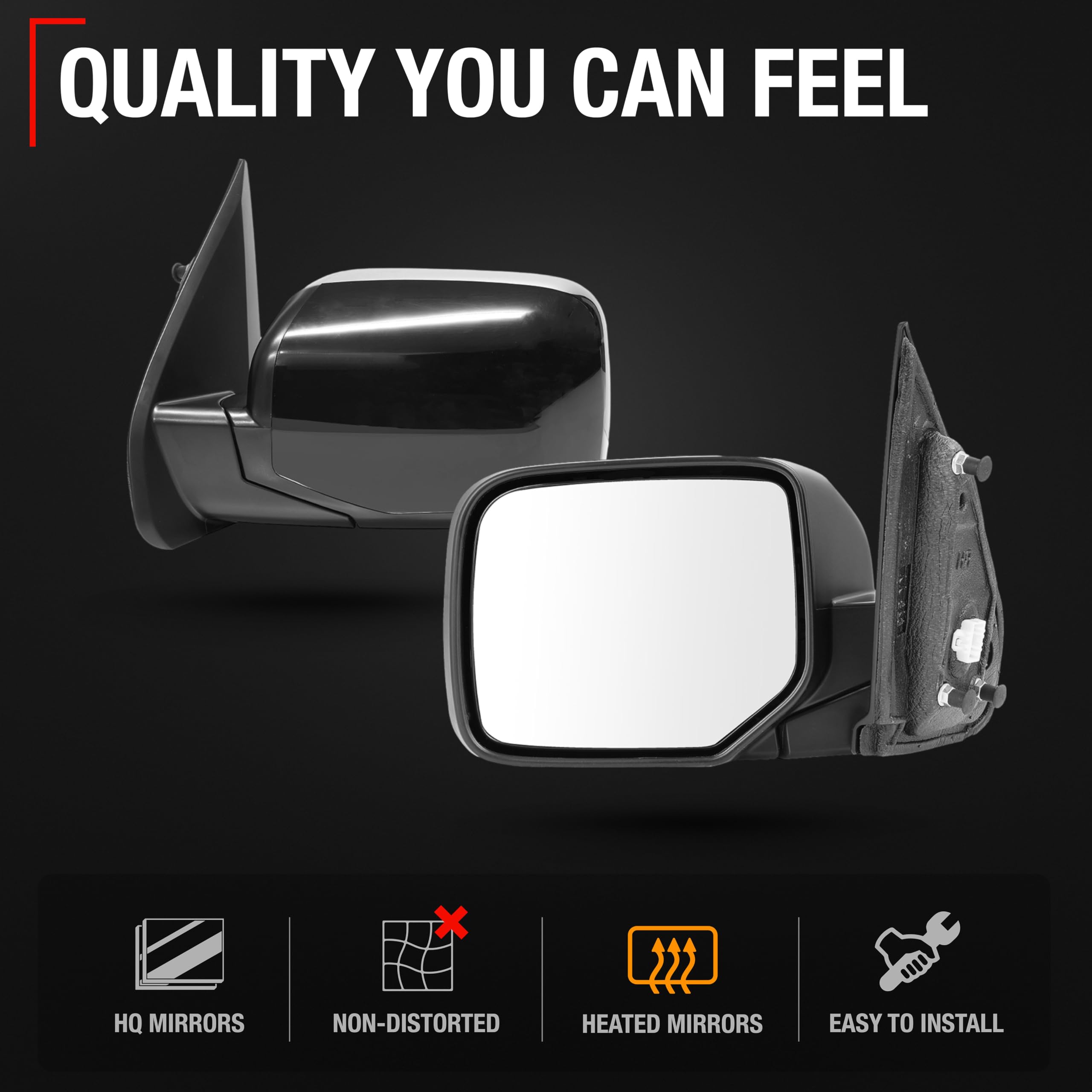 Upgrade the functionality and aesthetics of your vehicle's side view with our Power Door Mirror, compatible with 2009-2015 Honda Pilot. This high-quality replacement part is designed to meet or exceed OEM specifications with part numbers 76258SZAA11ZF, HO1320248, ensuring a perfect fit and easy installation. This front right-hand side mirror features a power adjustment mechanism, manual folding design, heated mirror, and flat glass to enhance your driving safety by providing a broader view. The mirror's smooth black cover, made from robust 16H5P plastic material, not only provides durability but also complements your vehicle’s exterior styling. Crafted from durable materials, this power door mirror ensures longevity and reliable performance, maintaining the functionality and aesthetics of your vehicle’s exterior. The installation process is straightforward, allowing for quick and efficient replacement without the need for professional help.