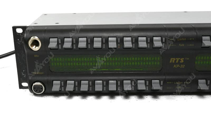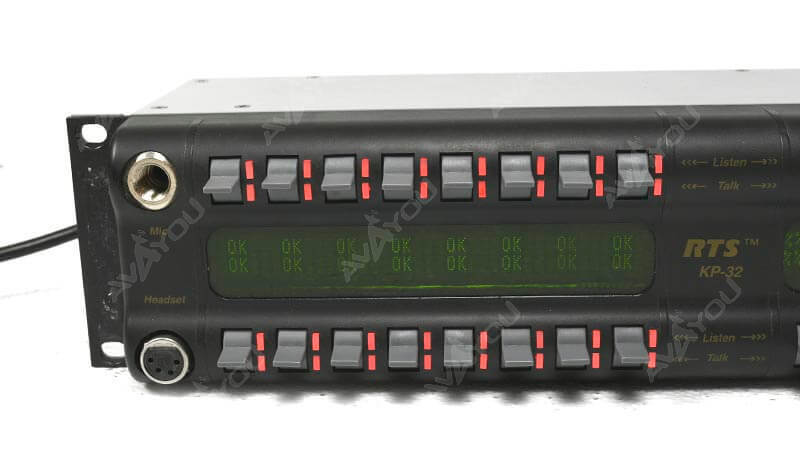 The RTS model KP-32 Classic keypanel fits in a standard 19 inch rack and is two rack spaces high. It has 32 lever keys: 30 keys are for intercom talk/listen assignment; one key is for call waiting response; and one key is for headset/microphone/program selection and volume setup. The KP-32 Classic combines all of the programmable features of the KP-12 keypanel. The KP-32 Classic features digital signal processing and binaural headset operation with left/right assignment of audio signals. It also has large, super-bright, long-life fluorescent displays with adjustable brightness control, making it suitable for all types of ambient lighting.