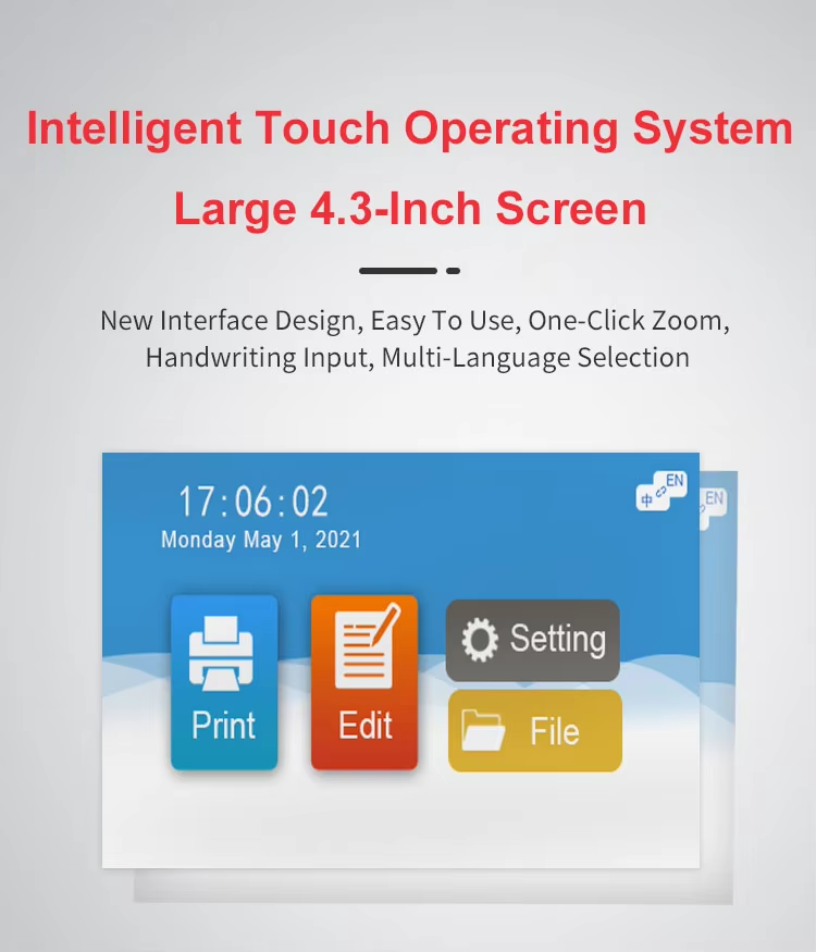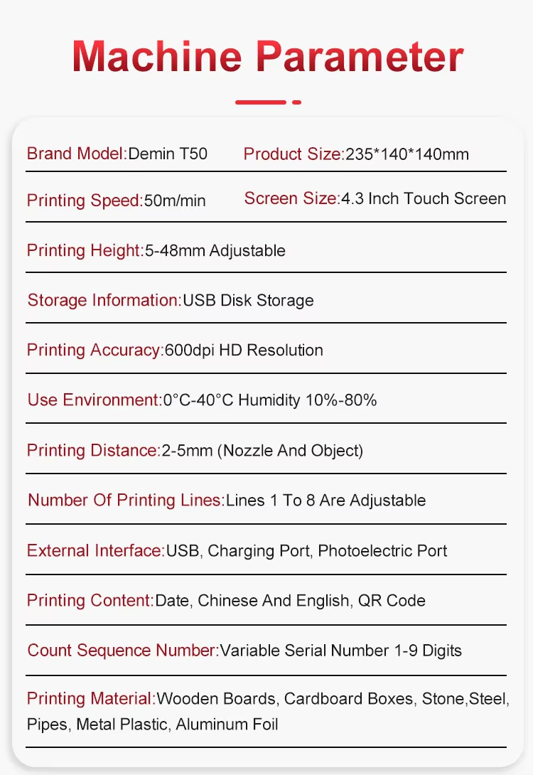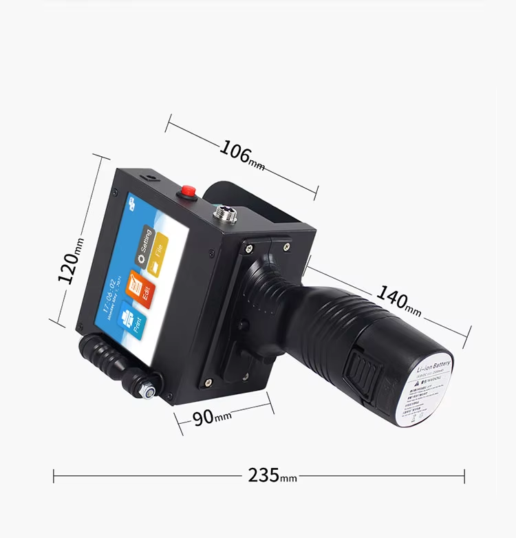 A:The machine can print on paper boxes, plastic, metal, glass, wood, cloth and other materials; Machines are available in height 1.27 cm, 2.54 cm, 5 cm, 10 cm or larger sizes