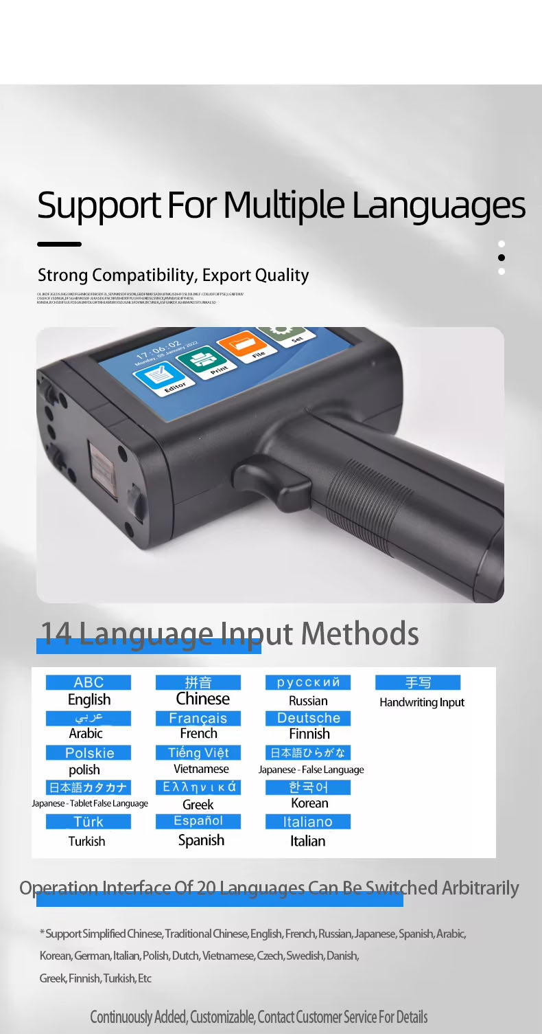 Japanese/Italian/Spanish/Bengali/Dutch/Portuguese/German/Greek and other languages;We can design your brand logo to customize the machine