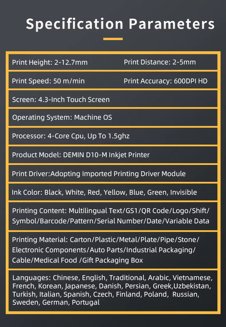 Our main business is: TIJ inkjet printers, CIJ inkjet printers, UV inkjet printers, laser inkjet printers, conveying equipment, accessories and consumables and other products, products are widely used in printing, electronics, plastics, hardware, food and beverage, medicine, cosmetics, tobacco, wood, auto parts, cables and building materials and other fields. At present, we have cooperated with more than 100 countries and regions, including Italy, Spain, the United States, Canada, Mexico, Russia, Vietnam, Thailand and so on. We always adhere to the customer first, continuous innovation and upgrading, and strive to provide all customers with the best products and services, committed to becoming the most reliable supplier!