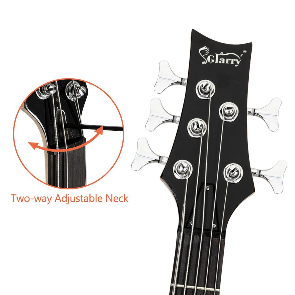 Looking for a high-performance bass guitar? Then take a closer look at our Glarry GIB Electric 5 String Bass Guitar Full Size! Featuring great sound and ease of playability, it is an ideal choice for beginners as well as bass musicians. Constructed with a wooden and synthetic body with a stunning finish, it delivers an outstanding look and sound. Comfortable neck and fingerboard are ideal for any style of playing. Adjustable bridge provides solid tone, sustain, and great intonation. High-tensile strength fretwire ensures durability and smooth playability. Bring it home right now!