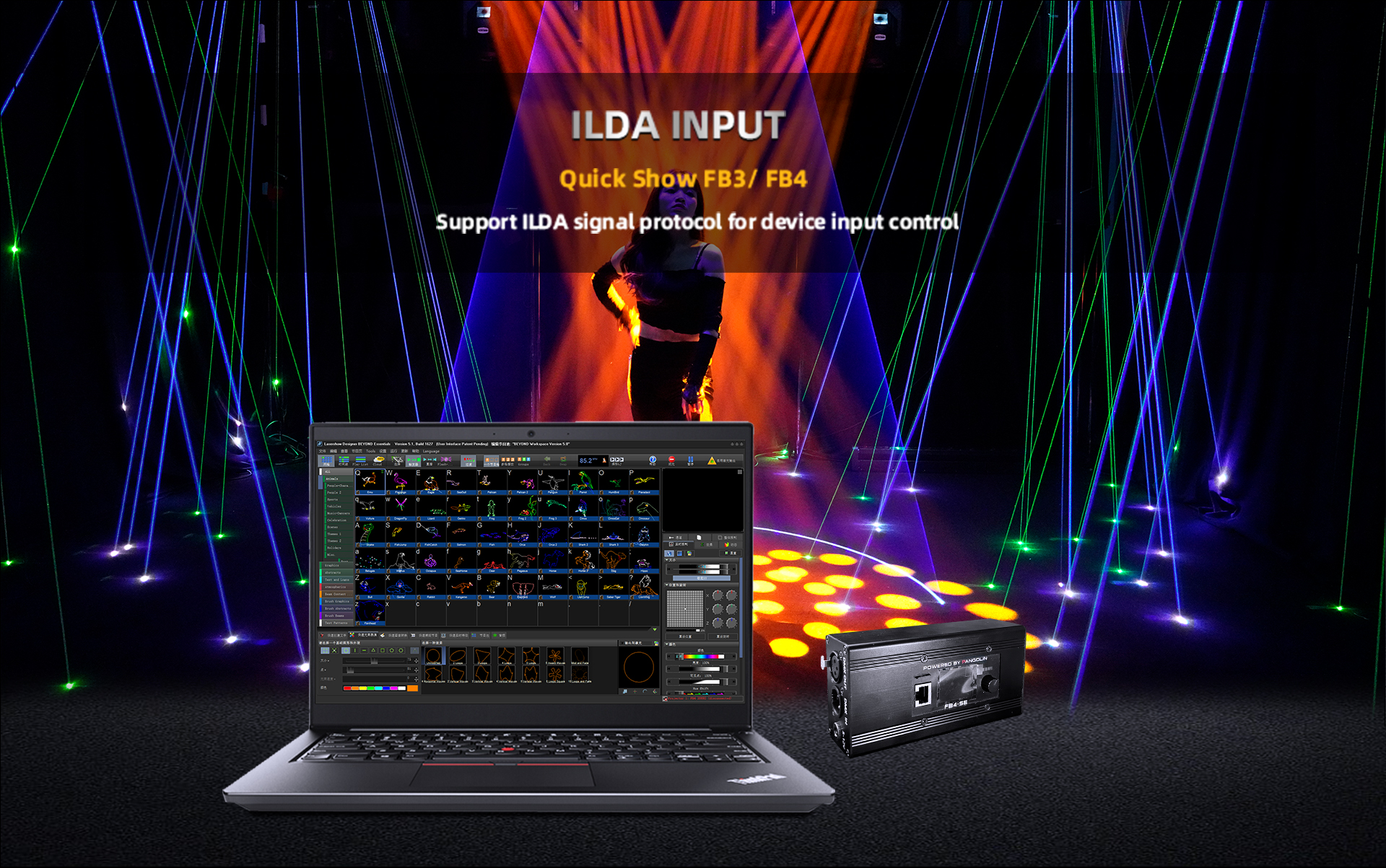 With Beyond QuickShow FB3/FB4, you'll have access to a vast library of pre-programmed laser effects,