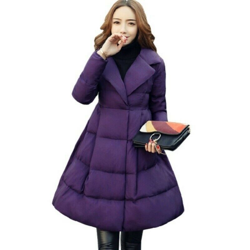 Lady Puffer Coat Flared Pleated Padded Jacket Overcoat Warm Outerwear Tops Thermal