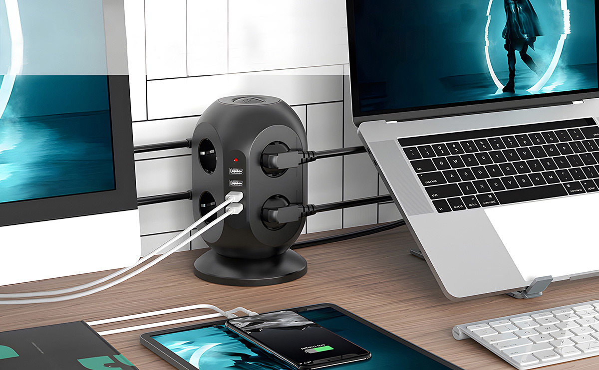 Tower-Steckdosenleisten können den Platz auf dem Schreibtisch besser ausnutzen als herkömmliche Steckdosenleisten und mehrere Oberflächen können gleichzeitig aufgeladen werden, ohne sich gegenseitig zu stören.
