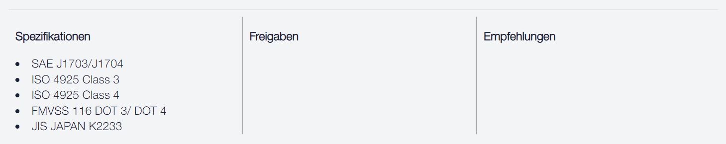 - Ermöglicht eine zuverlässige Betätigung des Bremssystems bei beliebigen Umgebungstemperaturen aufgrund des erhöhten Siedepunkts (>,245 °C) und ausgezeichneten Niedrigtemperatureigenschaften (bis zu -40 °C),