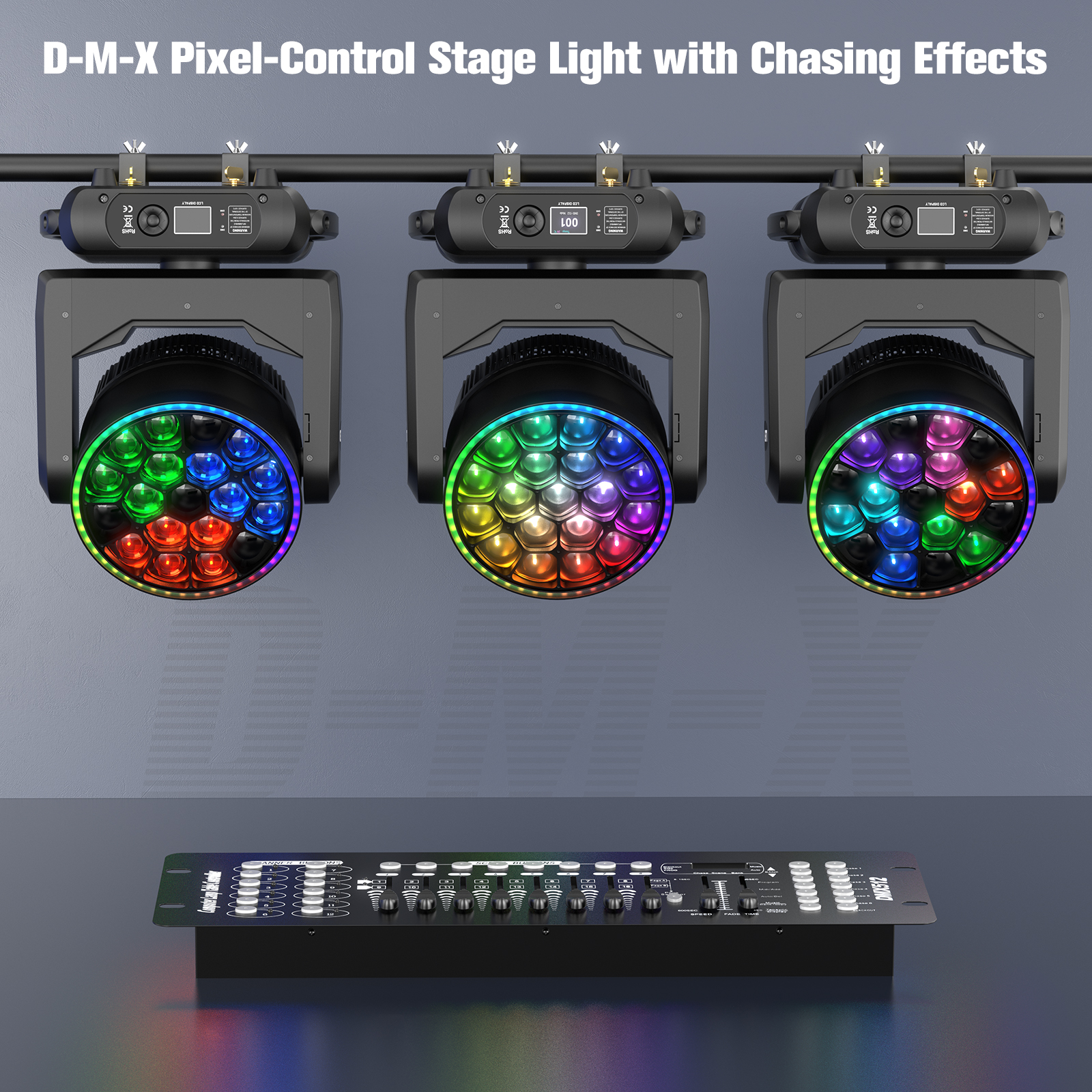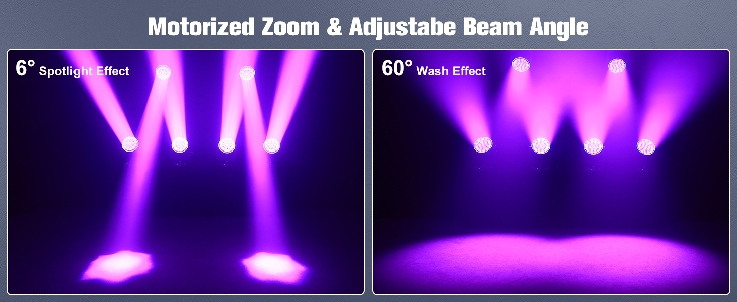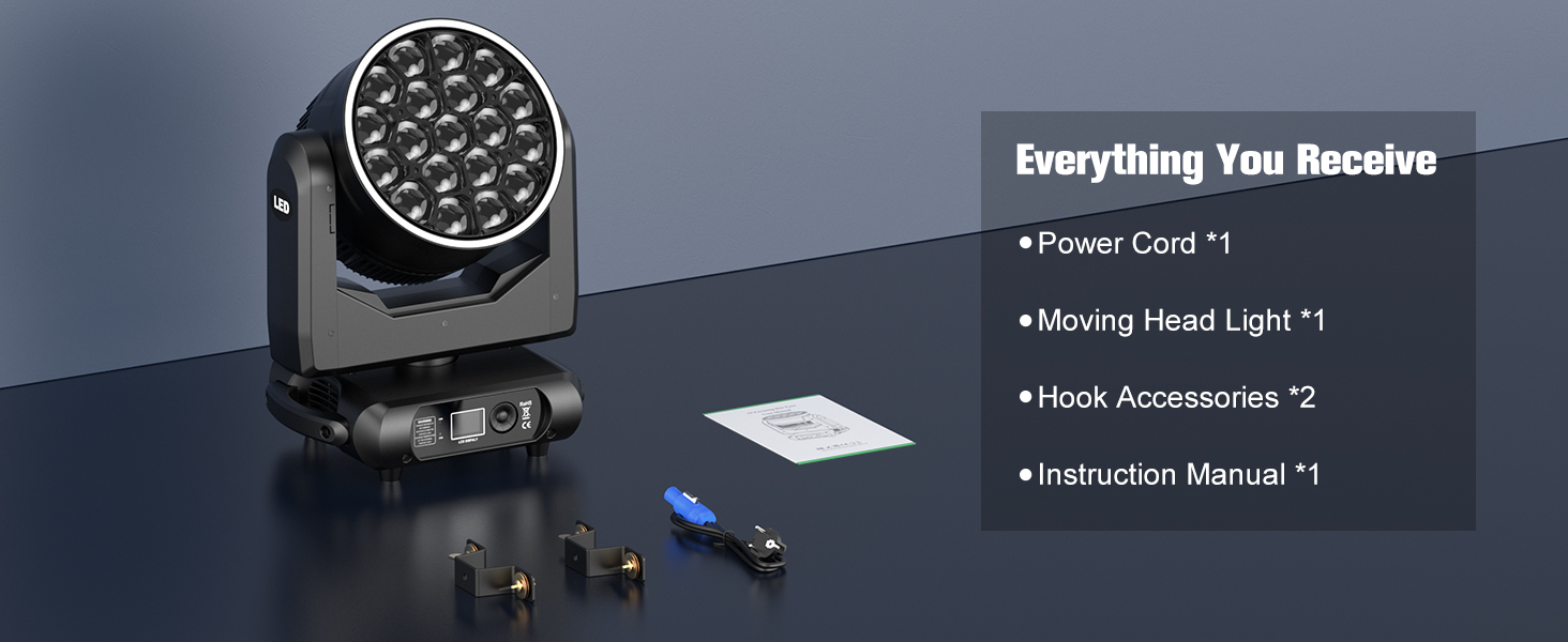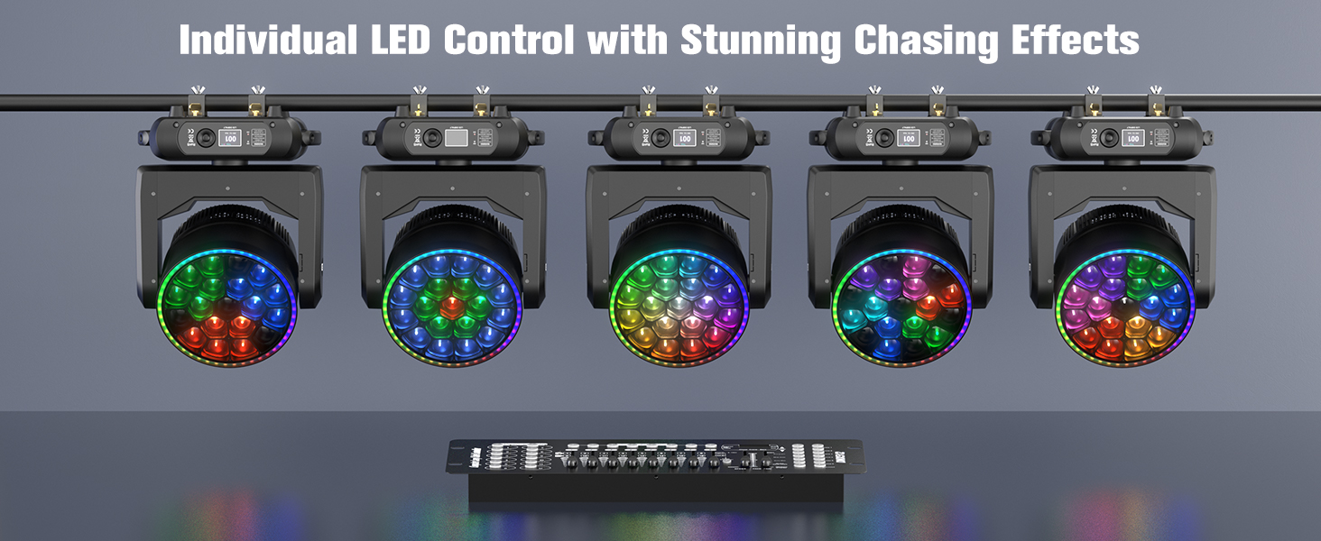 1.Equipped with 19 high-power 20W RGBW LEDs (16.7 million colors) and 47 full-color auxiliary LEDs, this light delivers vibrant, uniform lighting with zero color spots. Built-in dynamic effects create stunning visual impact for any venue.