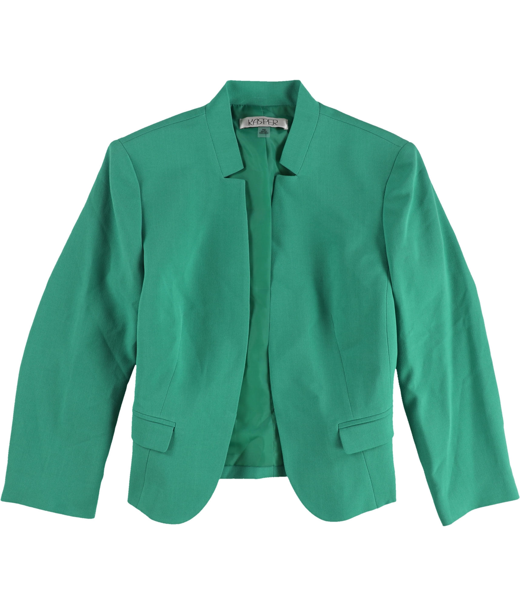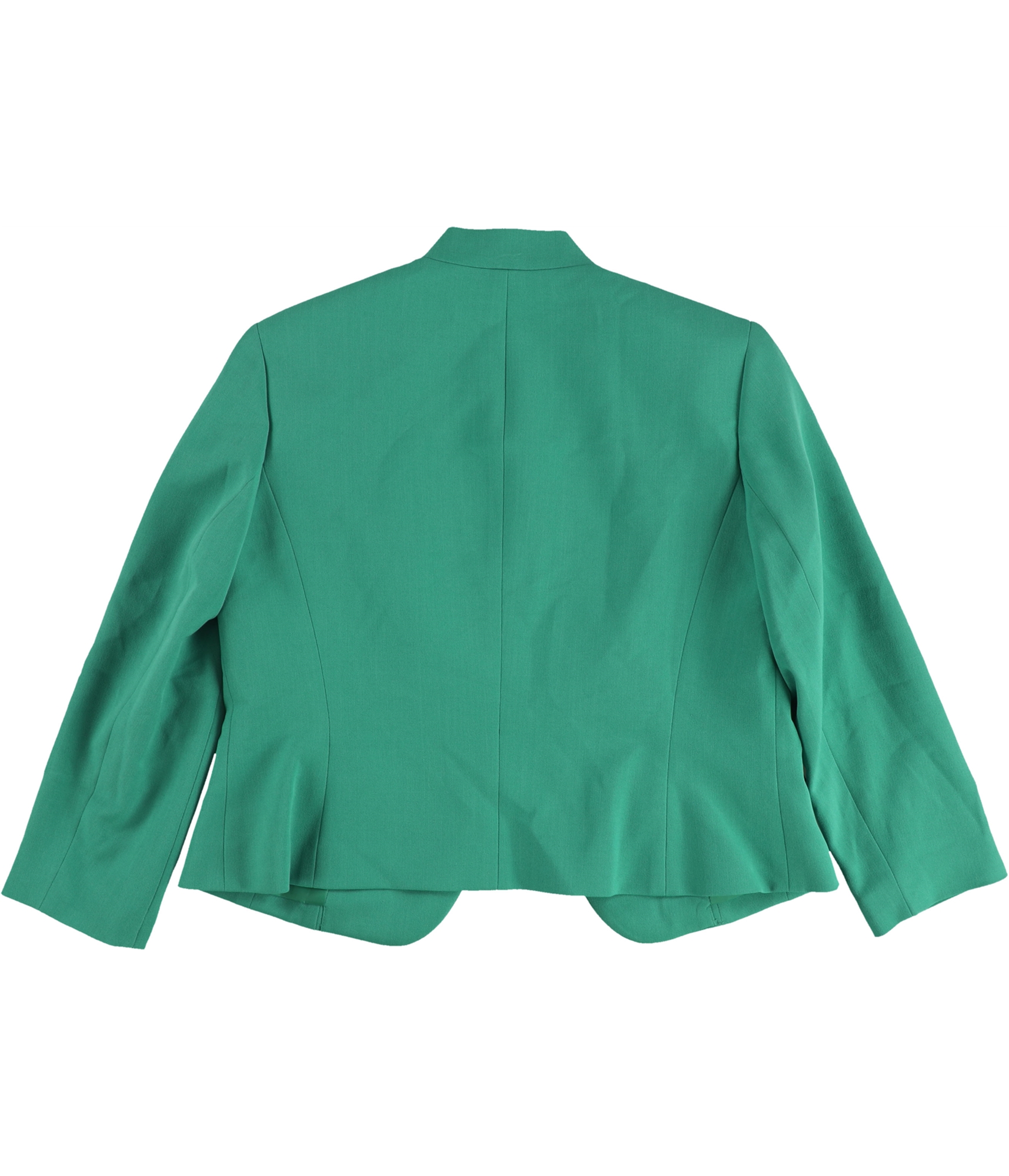 Additional Details: Lower single hook-and-eye closure Faux front pockets Padded shoulders
