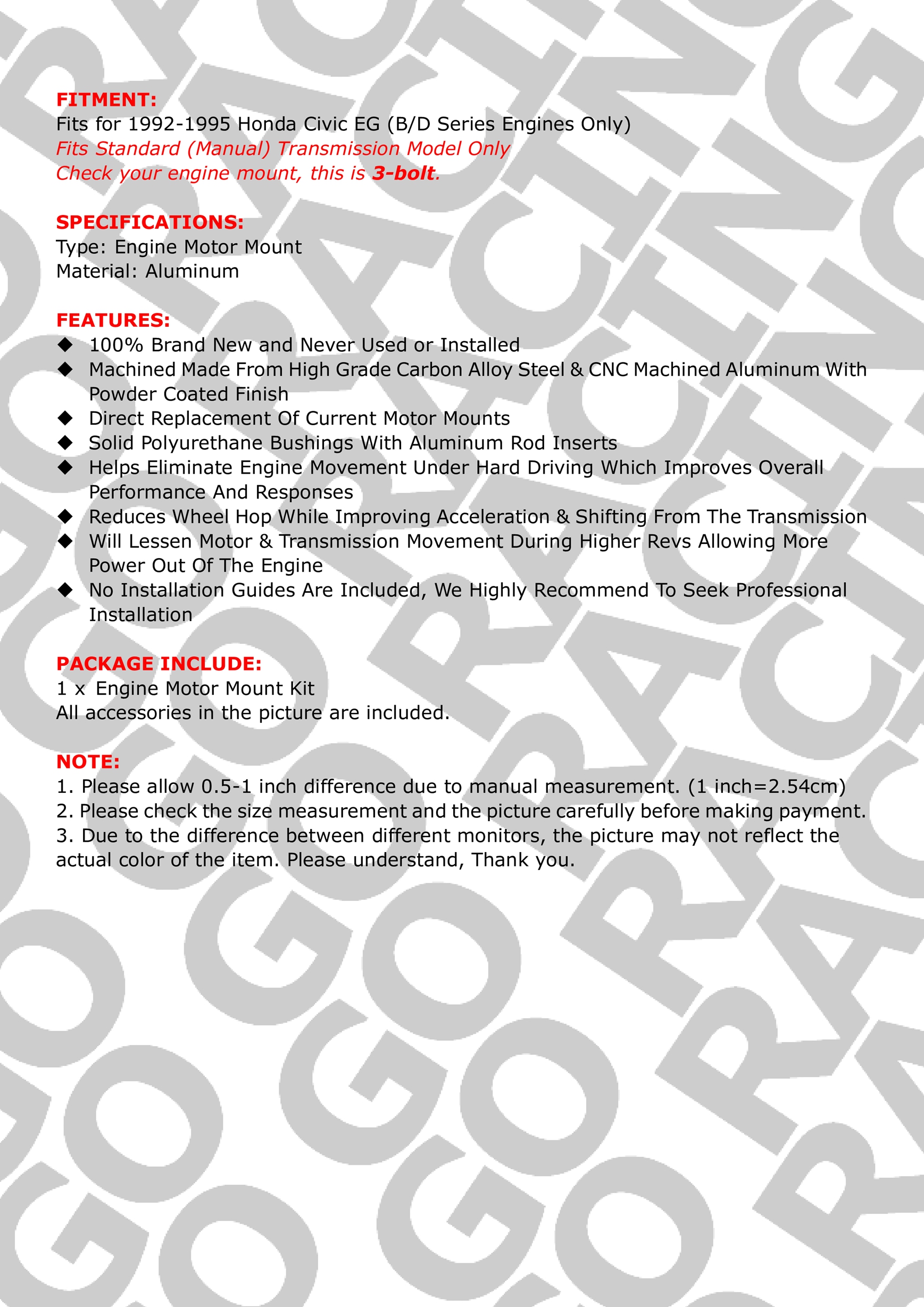 3-Bolt Motor Mounts For Honda Civic EG 92-95 D/B-Series For Acura Integra 94-01
