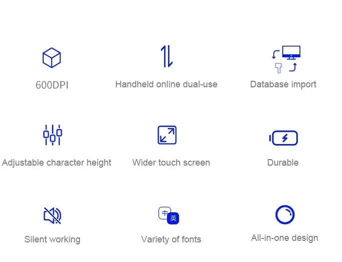 A:The machine can print on paper boxes, plastic, metal, glass, wood, cloth and other materials; Machines are available in height 1.27 cm, 2.54 cm, 5 cm, 10 cm or larger sizes