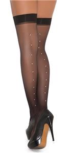 - Description: Sheer thigh high stockings with rhinestone back seam.
