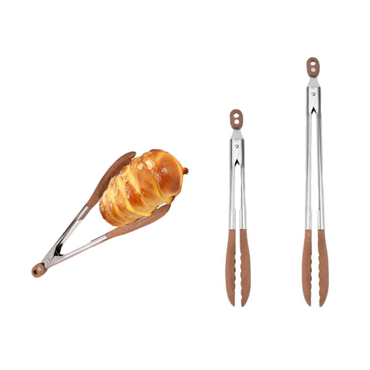 Elevate your cooking experience with these 2 Pcs Walnut Wooden Kitchen Tongs. Crafted from premium walnut wood, these wooden tongs for cooking are not only sturdy and long-lasting but also add a touch of elegance to your kitchen. Their multi purpose versatility makes them a necessary tool for every home cook; Furthermore, the tongs also make a good gift for your loved ones, especially those who love cooking.The anti-slip long handles provide a secure grip, making it easy to handle hot or slippery foods. With lengths of 9 inches and 12 inches, these anti-slip long handle wooden kitchen tongs are perfect for various tasks, from tossing salads to serving delectable dishes. The locking mechanism ensures convenient storage, while the smooth wooden surface ensures easy cleaning. Enhance your culinary journey with these versatile and stylish wooden tongs for cooking. Color and Package: the salad tongs come in an walnut wood color.