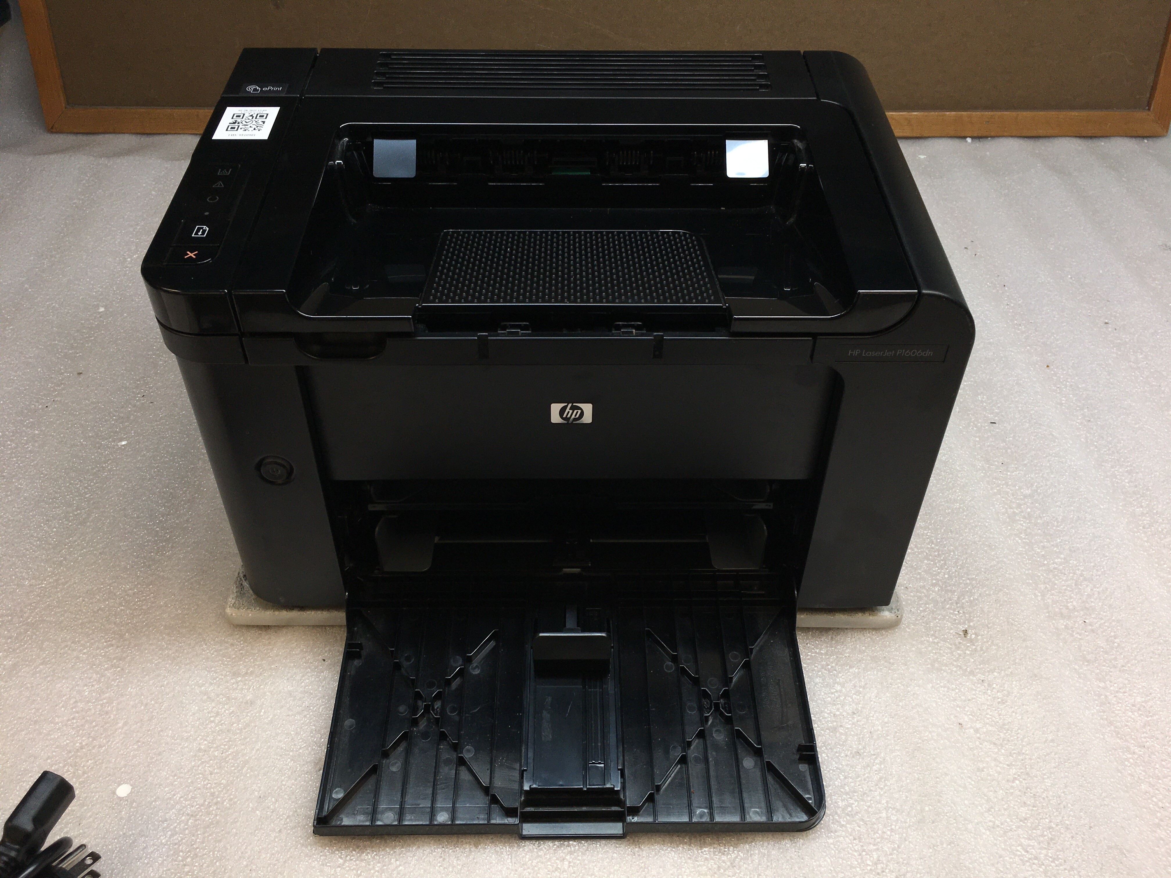 The HP LaserJet P1606DN is a reliable monochrome laser printer designed for efficient black-and-white printing with crisp, clear output. Ideal for home or small office use, this model supports network connectivity and provides solid performance for everyday printing needs.