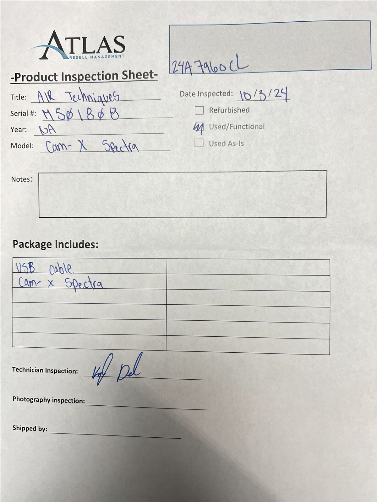 Used, functional NO mechanical defects identified during testing. MARKS FROM PRIOR USE Marks from prior use. (sticker residue) Specifications Manufacturer: Air Techniques Model: Cam-X Spectra Serial Number: M501808 Power Requirements: USB Year: Not available Compatible Operating System: 64-bit Connection Type: USB