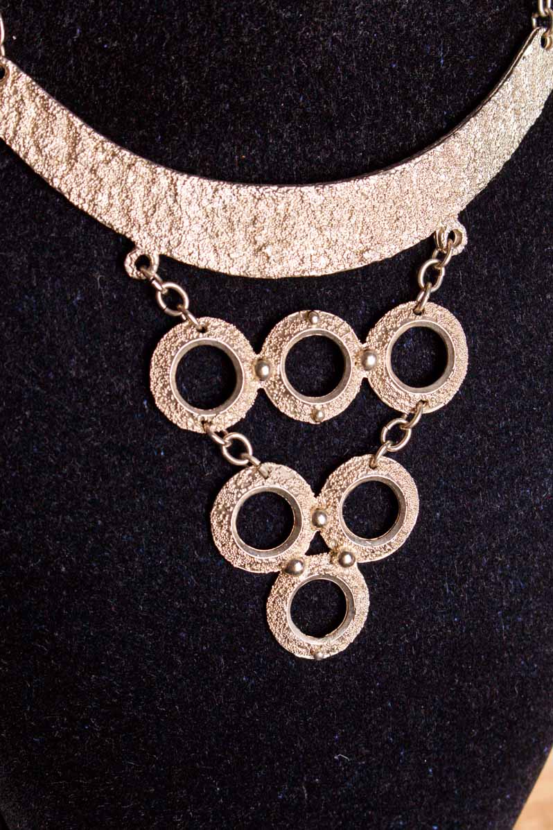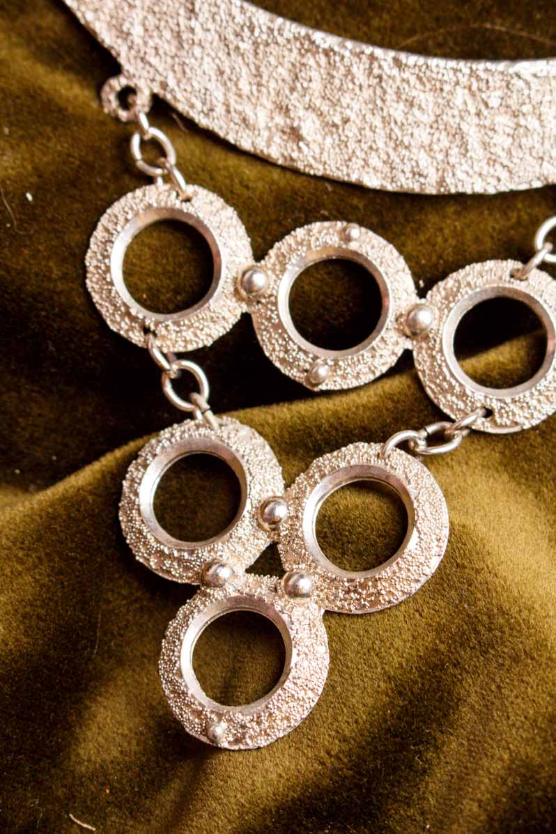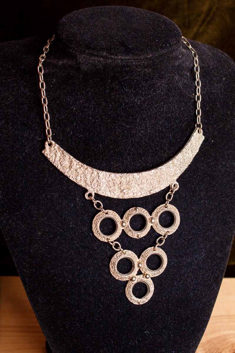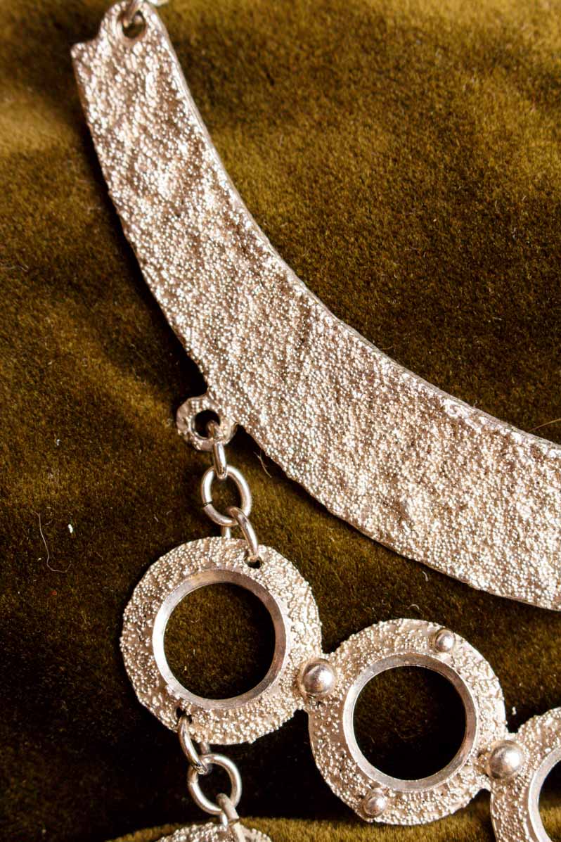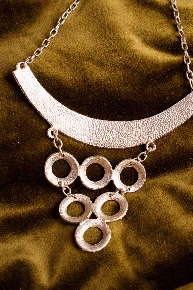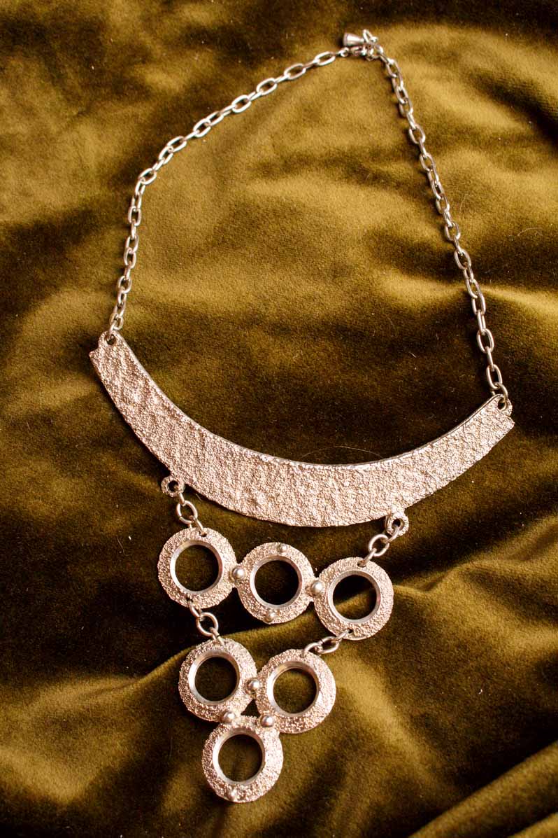 silberfarbener strukturierter Halsreif mit großem Metallanhänger