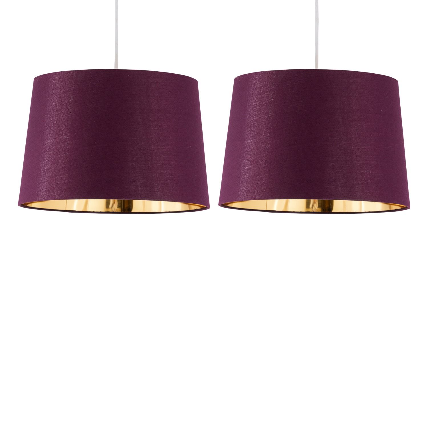 Burgundy cotton fabric with contrast metallic inner tapered cylinder easy fit 28cm shades for use on a ceiling pendants or table lamps