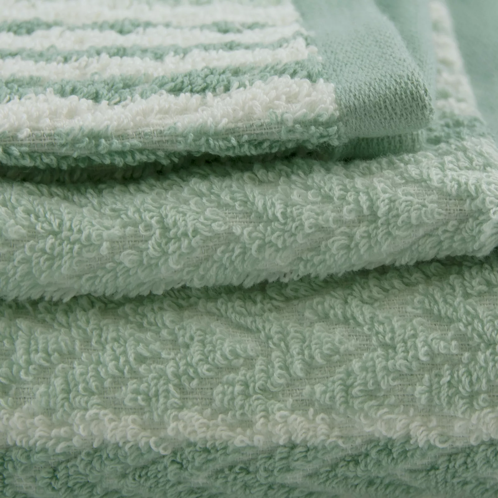 - The towels are designed with varying green and white shades