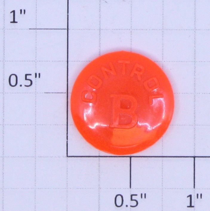 See photo for description. "Control B" lettering size may vary. Shade of orange may vary.