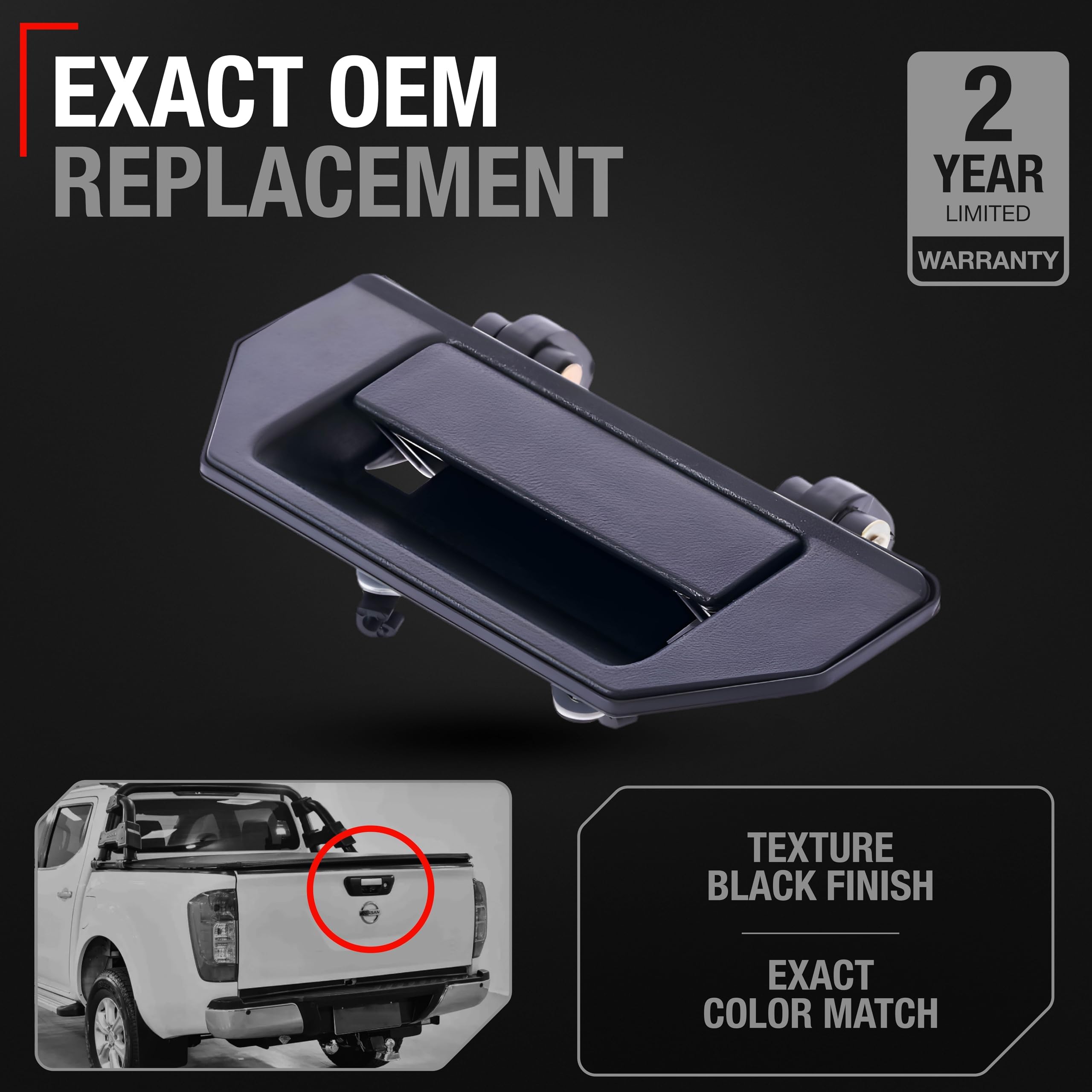 Enhance your vehicle's functionality with our OEM-spec Tailgate Handle, compatible with 1998-2000 Nissan Frontier, 1986-1994 Nissan D21, 1995-1997 Nissan Pickup. This high-quality replacement part, crafted from durable plastic, matches OEM part number 9060601G01, 906068Z360, 77057, ensuring perfect compatibility and performance. Its textured black finish not only adds style but also provides increased durability, resisting wear and tear from regular use. Installation is straightforward and can be completed quickly, making it ideal for DIY repairs. Upgrade your Nissan Frontier's tailgate with this reliable and stylish handle, ensuring it operates smoothly and efficiently every time.