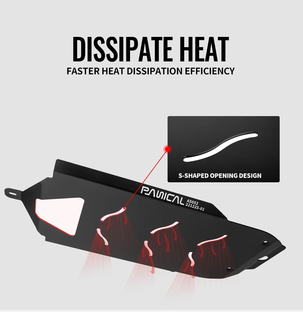 Structural Design Highlights Precise drilling: Reserve original screw holes, heat dissipation ports, and drainage channels to ensure easy installation without affecting engine heat dissipation. Reinforcement design: Stamping or bending processes form a three-dimensional reinforcement structure, dispersing impact forces and avoiding deformation. Edge treatment: Curling or polishing process to prevent hand cutting and enhance safety.
