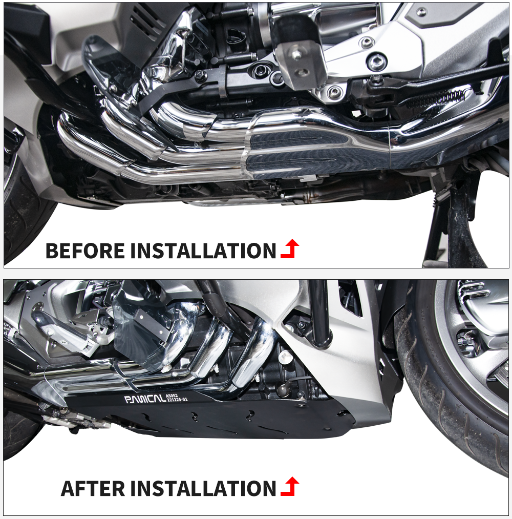 Product Positioning and Adaptability Compatible models: Designed specifically for the 2018-2025 Honda Goldwing GL1800 F6B, it perfectly fits the original chassis structure and can be installed without modification. Purpose: To protect the bottom of the engine from road impacts such as gravel, mud, and bumps, and to extend the lifespan of core components.