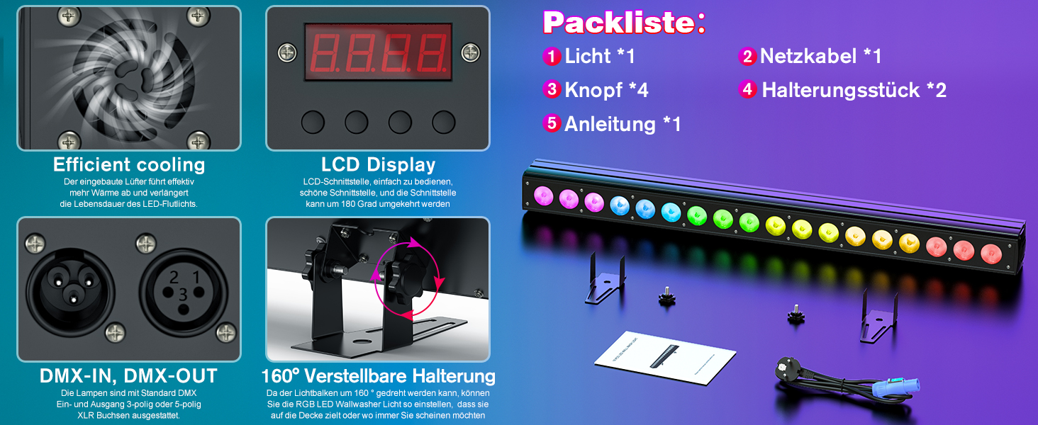 Steuermodus: DMX512, musikaktiviert, Master-Slave, automatisch