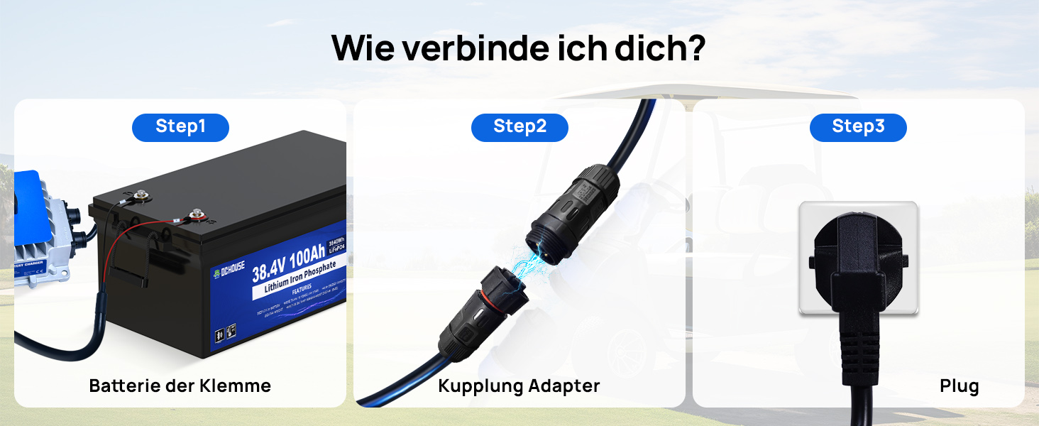 【Tragbar und einfach zu bedienen】: 36V Lithium-Batterie-Ladegerät mit praktischem Griff-Design. Dieses Produkt kann als 36-Volt-Golfwagen-Batterieladegerät verwendet werden, einfach zu laden und einfach zu bedienen. Die Länge des Eingangskabels beträgt 1,1 m/3,6 ft, die Länge des Ausgangskabels 1,1 m/3,6 ft, und die Gesamtlänge des Kabels beträgt ca. 2,2 m/7,2 ft. Darüber hinaus ist die Funktion der Ladeanzeige einfach und leicht zu verstehen, so dass das Gerät wirklich Plug-and-Play ist und dem Benutzer ein bequemes Ladeerlebnis bietet.