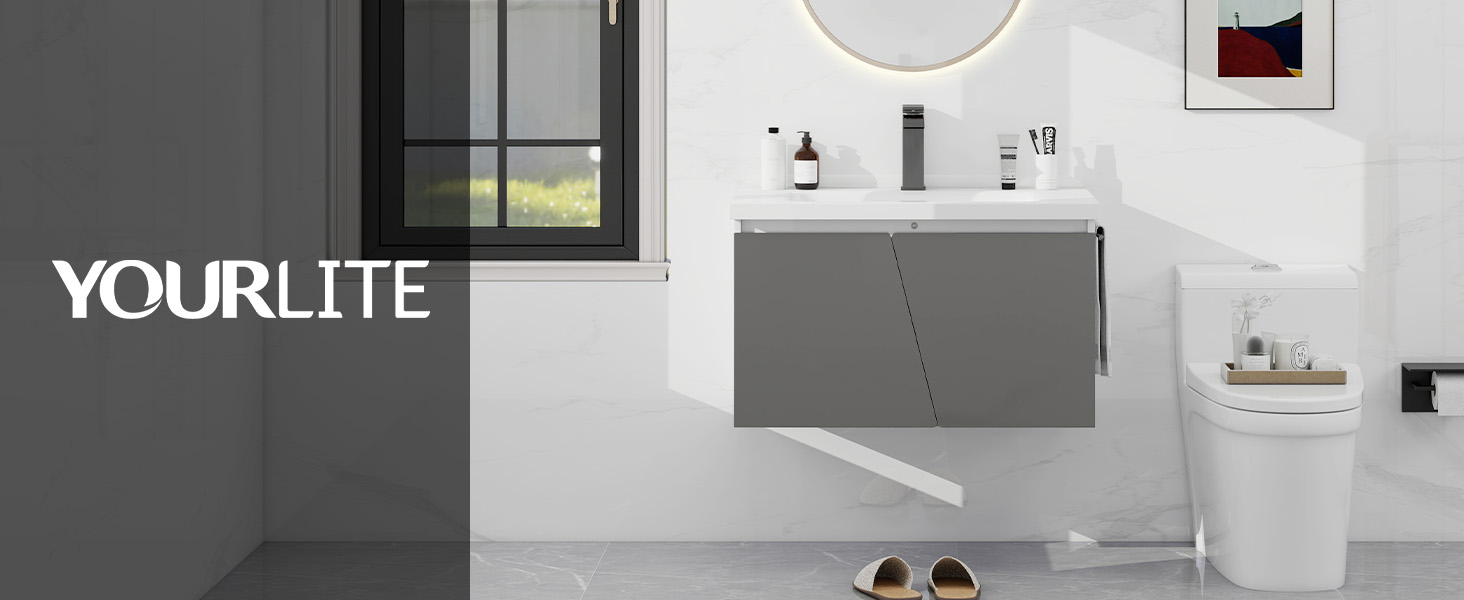 YOURLITE 31" Floating Bathroom Vanity Set with Smart Sensor Light, Undermount Sink, Soft-Close Doors & Ample Storage Shelves, Wall-Mounted Cabinet for Modern Bathrooms, Grey